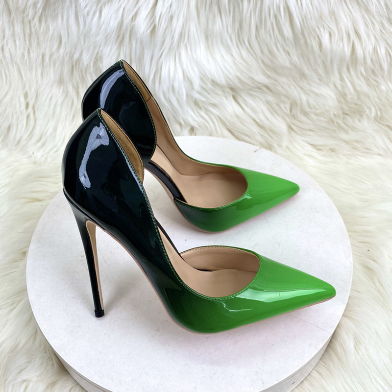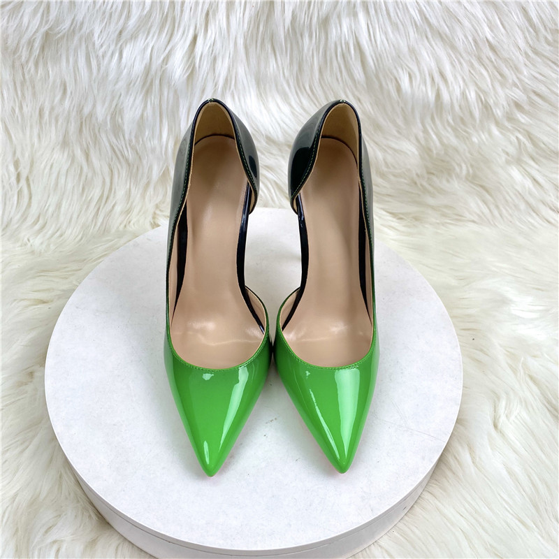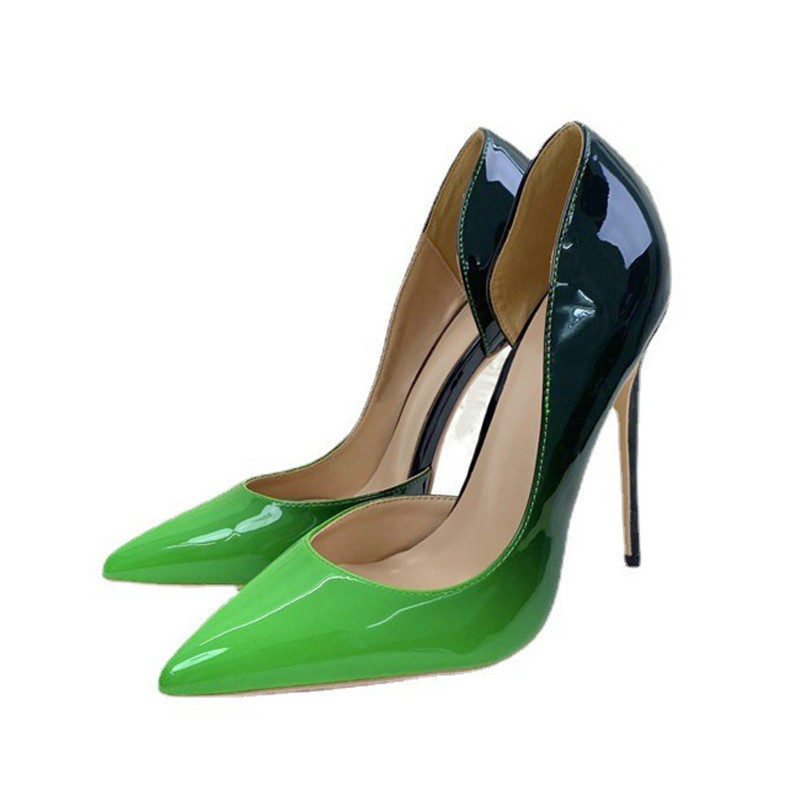 Women Pointed Toes Thin Heels High Heels 12CM Shallow Mouth Patent Leather Shoes