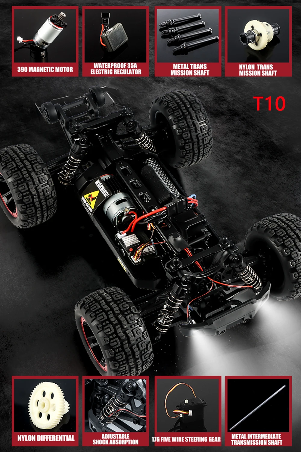 1. Brushless model:2105A . Brushed model:T10.