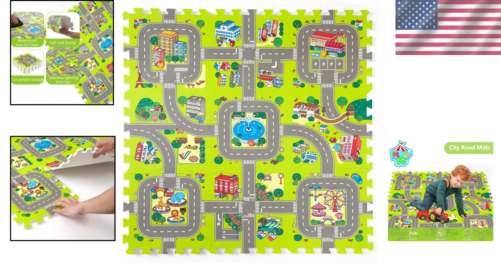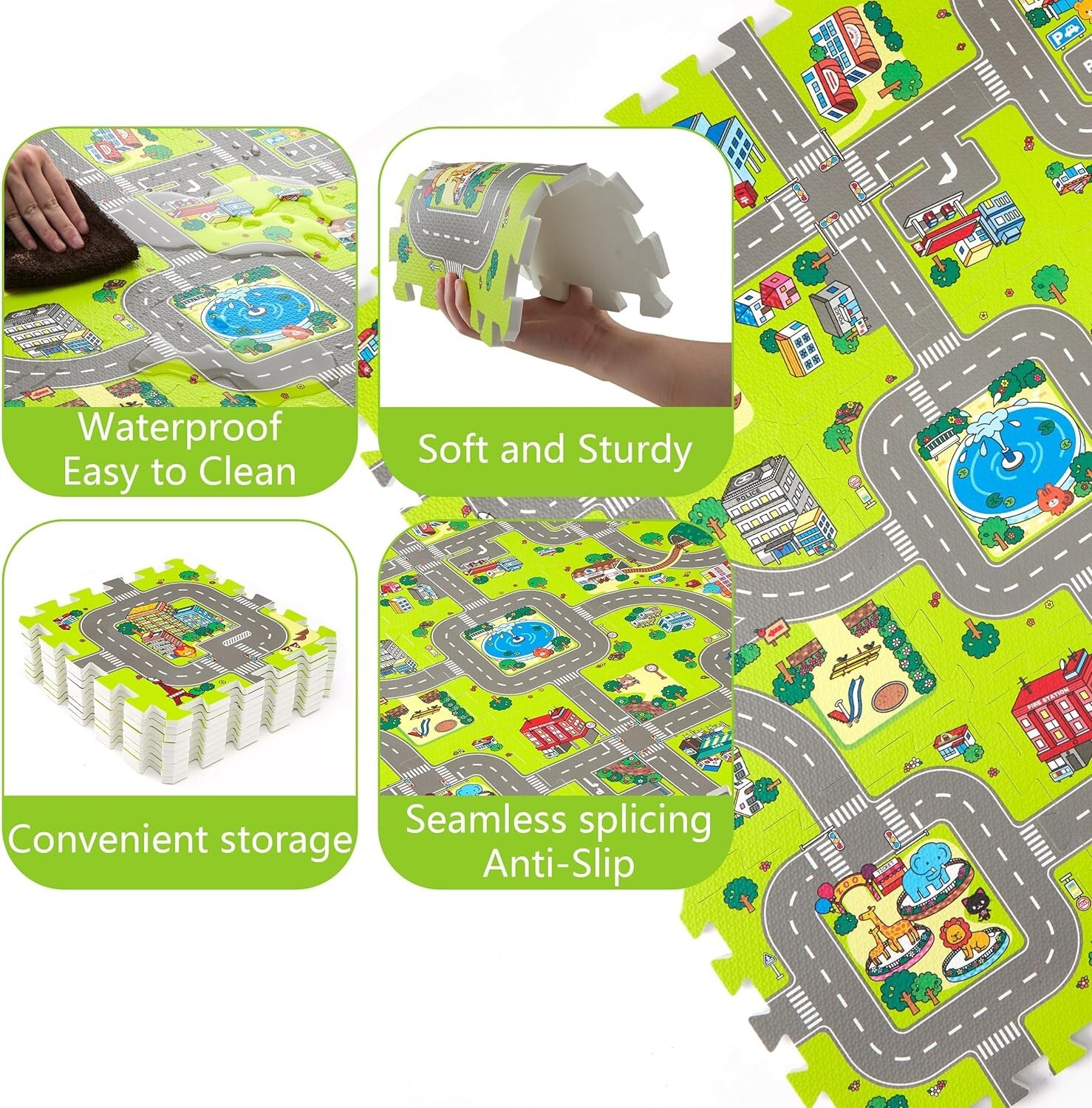 Versatile Interlocking Foam Play Mat for Toddlers - Non-Toxic City Track