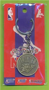 This is a well-made metal keychain, with The Oklahoma City Thunder logo. This well-made keychain contains a 1-1/4" logo on both sides of the coin, a 1-1/2" long chain, attached to a 1-1/4" hoop to add some of your other keys. Just a phenomenal logo and so attractive, while being fully fuctional.