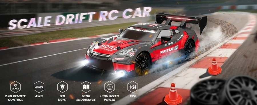 High-performance Fast Drift Car: 1:24 scale remote control fast drift car throttle proportional control, you can easily control the drift car to move forward, backward, turn left, turn right and accelerate and decelerate proportionally. The maximum speed of the rc sports car can reach 20+KM/H, which can bring you a faster and more exciting high-speed racing experience. You can also perform various types of drifts, such as U-shaped drift, S-shaped drift, 360-degree drift, each type of drift will bring you different fun and experience, this is a drift car suitable for all kids and adults