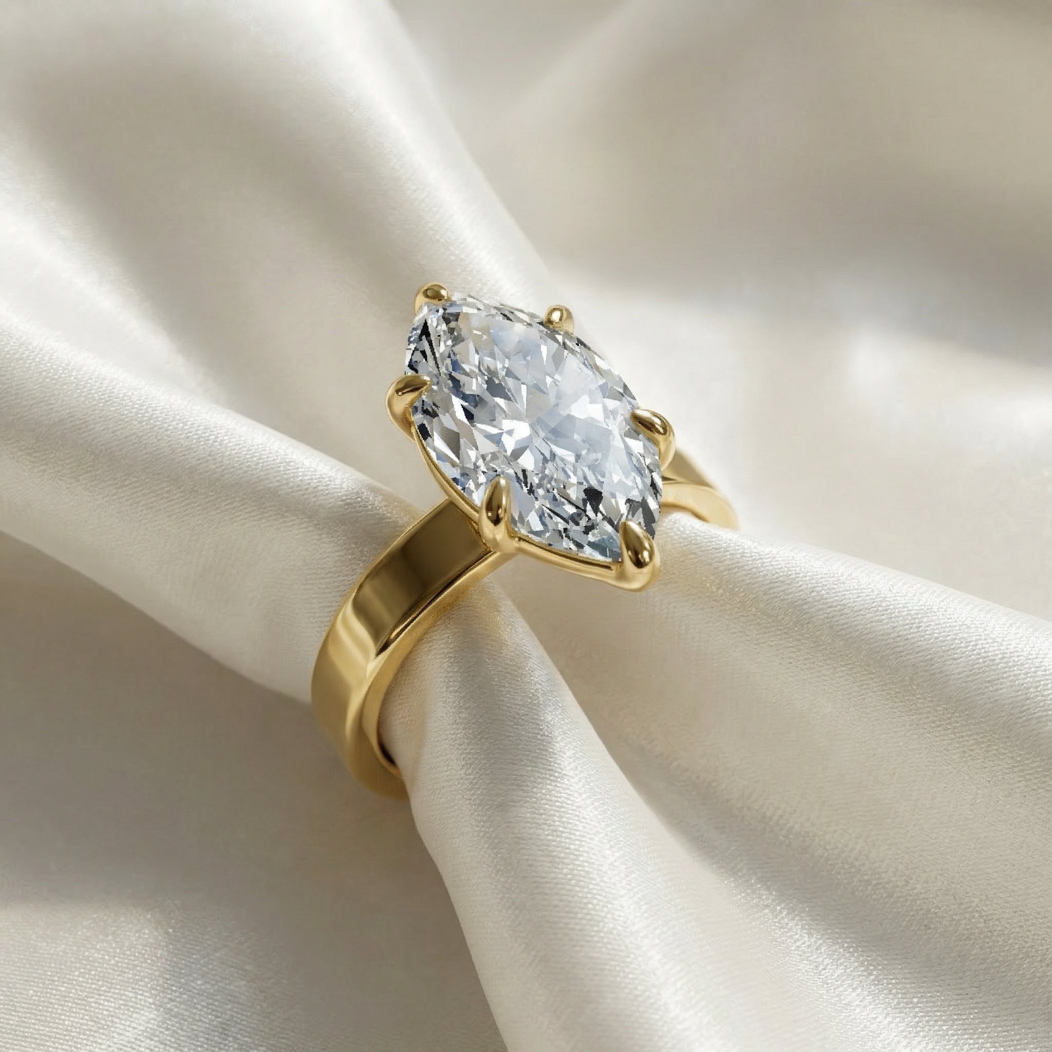 Certified 2Ct Marquise Cut Flat Cigar Band Engagement Ring 14k Gold Lab Grown
