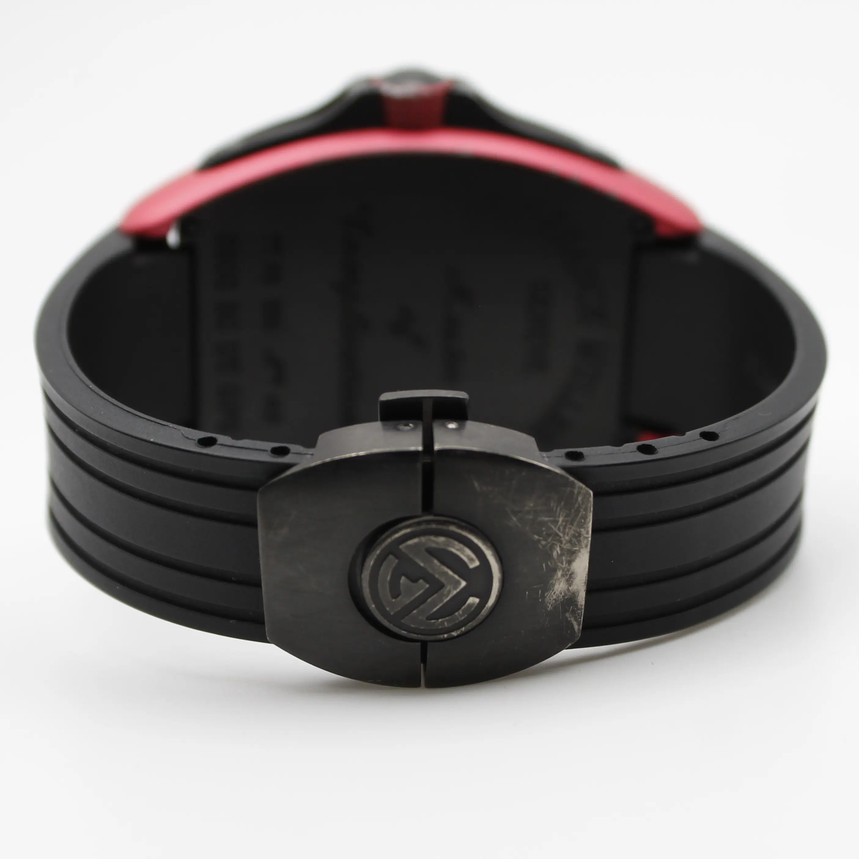 Operating a Chronograph requires using the pushers on the side of the case. The top pusher is used to start and stop the chronograph hand while the one at the bottom is used to reset it. Once the top pusher is pressed, the hand will run continuously, which you can track using the accompanying sub-dial. In order to reset the chronograph, it has to be stopped first. Otherwise the button will do nothing when pressed.