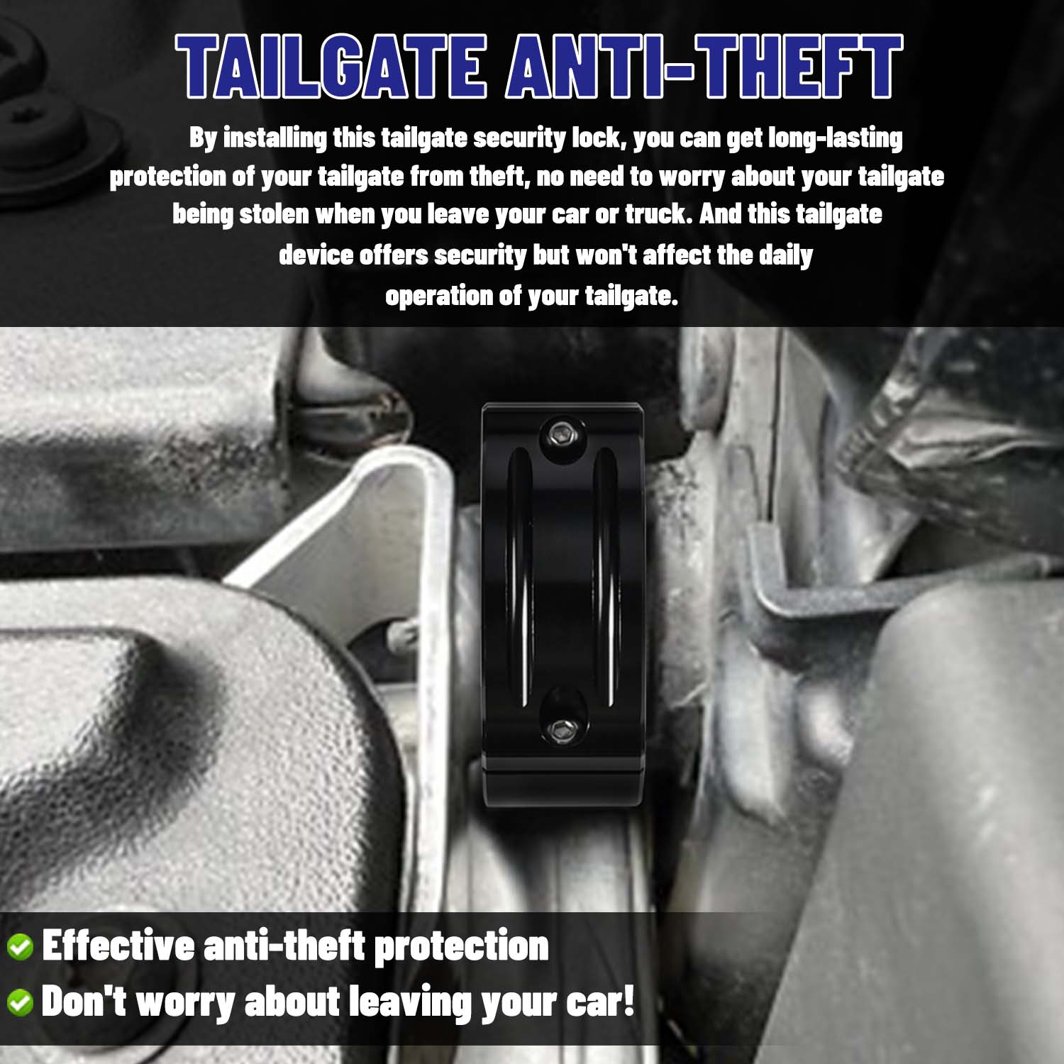Features: [USAGE] Provide long-lasting protection of your tailgate from theft, no need to worry about your tailgate being stolen when you leave your car or truck [MATERIAL] Premium quality, made of high quality CNC machined aluminum material, much more reliable and sturdier than those tailgate locks that made of fragile plastic, will provide a long term service [INSTALLATION] Equipped with two screws, hassle-free installation, save your time. And this tailgate security device offers security but won’t affect the daily operation of your tailgate (Assure the arrows are facing towards the right taillight)