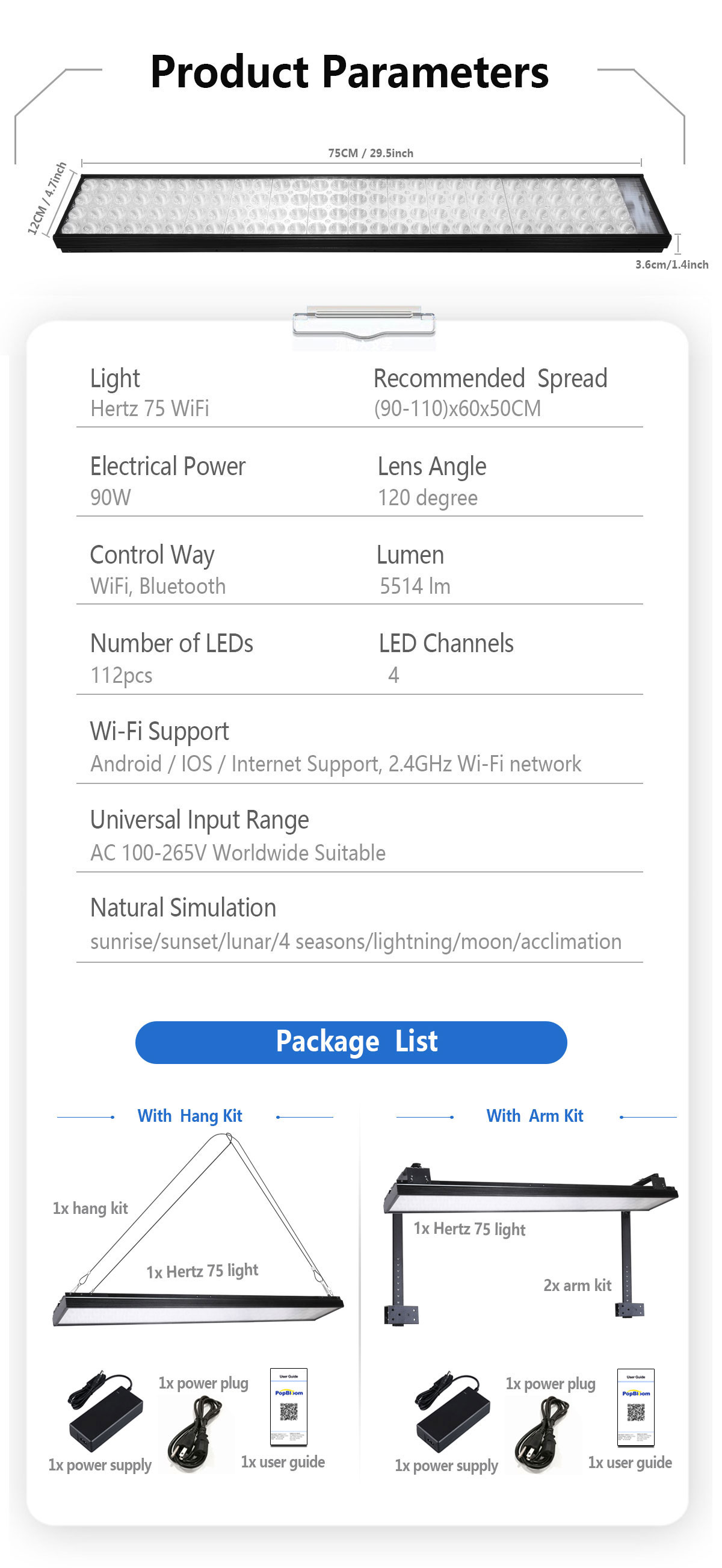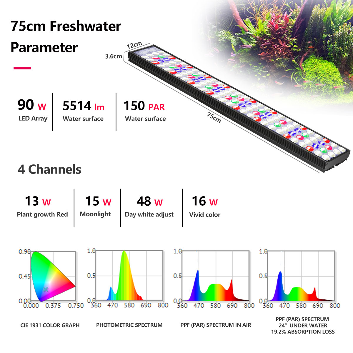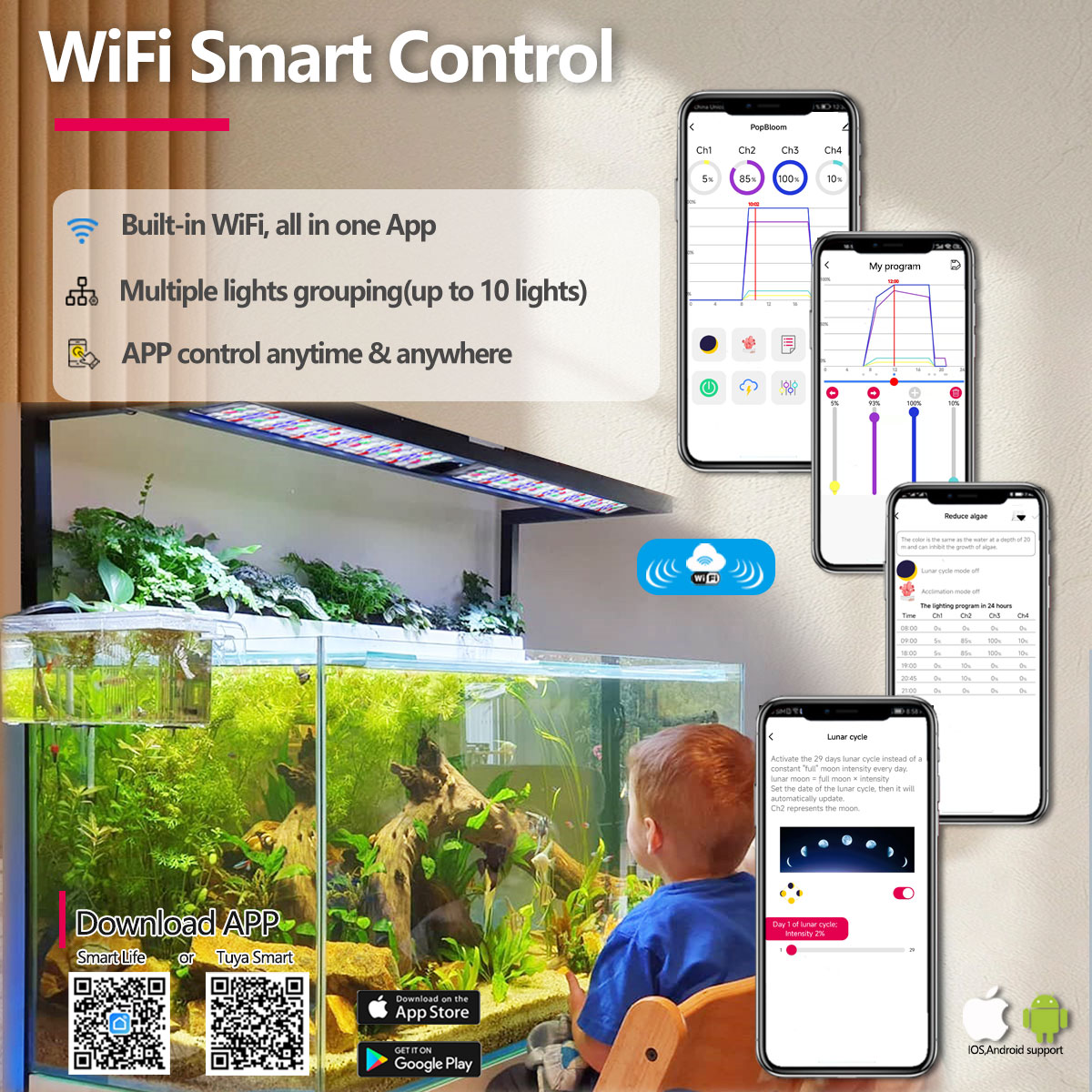 PopBloom WiFi LED Aquarium Light Full Spectrum For 90CM 36" 3ft Fish Tank