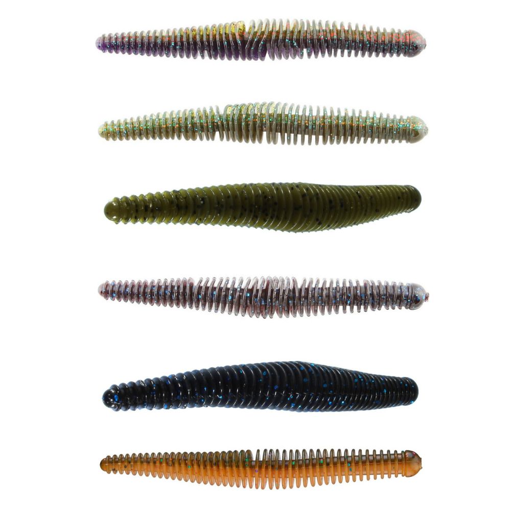 Rattlesnakes have been helping anglers catch more bass with it's first-of-its-kind tapered ring design since 2005. The RattleSnake is extremely versatile and can literally be fished in any condition and rigged for almost any application. Rig it on the deadly end of a Carolina rig, weightless, weighted hook, Texas-rig, shaky head, drop shot or wacky rig. The rattlesnakes have a ringed body creates a larger profile, extreme action and holds air and releases tiny bubbles like a living creature. Loaded with proprietary Xtreme scent & salt that combines the most powerful bass attractants to make bass hold on longer and mask human scent. Specs: Size: 4.75" Ringed Body Xtreme Scent & Salt Infused Pack Qty: 8 Best Rigging Setup: Shakyhead Weightless Texas Rig Carolina Rig Neko.
