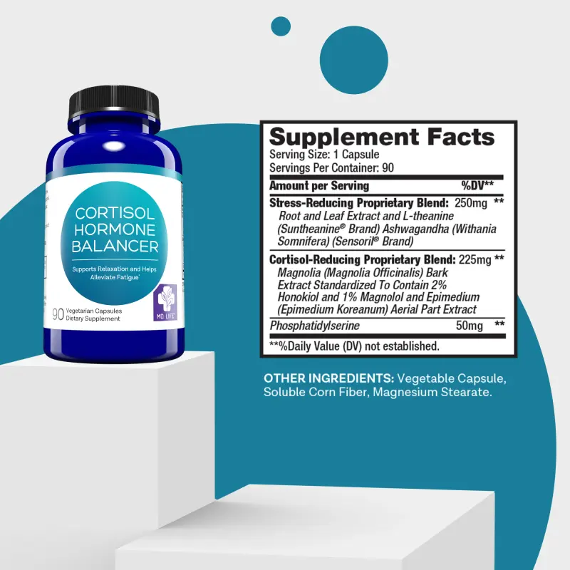 MD.LIFE™ Cortisol Hormone Balancer is a supplement for the body and the mind, as it can also help regulate stress-related eating and occasional insomnia.