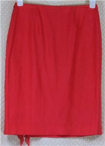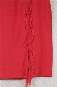 Renato Nucci Linen Silk Ruffel Skirt Red Straight Lined Skirt Med Size 40 UK 12