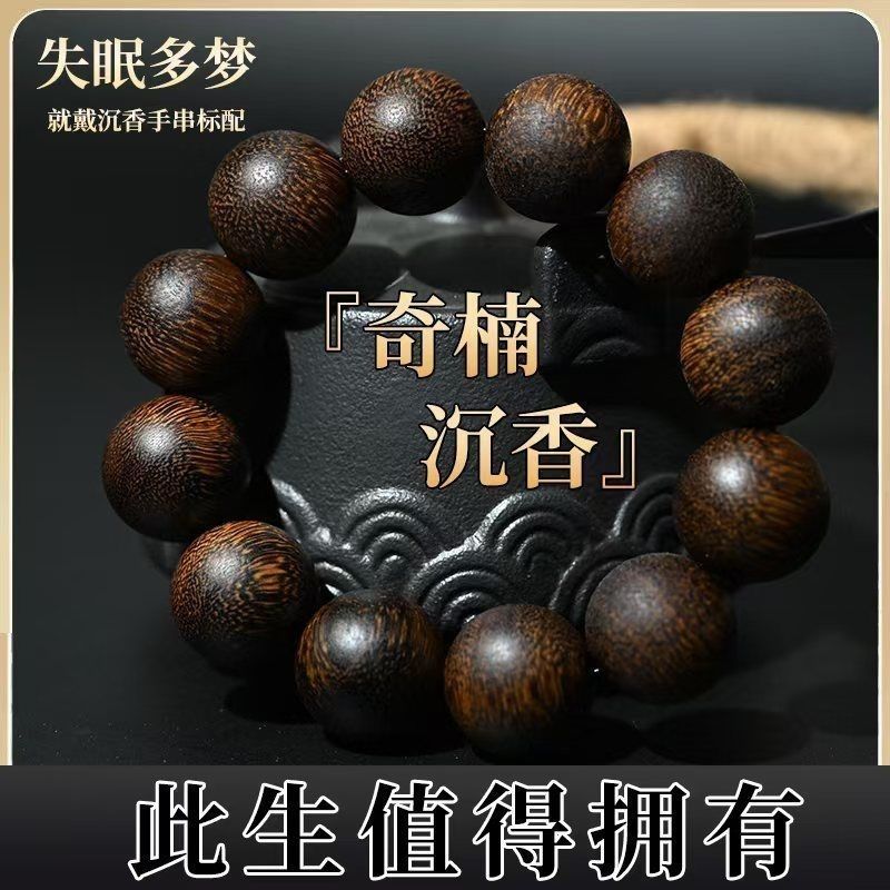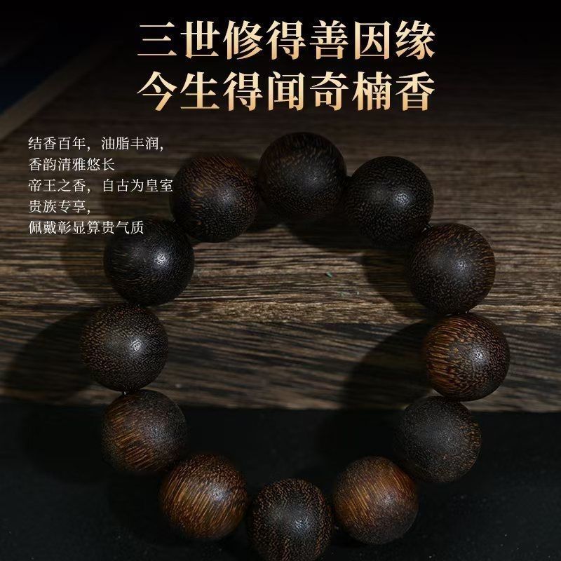 Vietnam Agarwood Beads Bracelet 20mm 12 Beads Natural Black Oil Prayer Beads