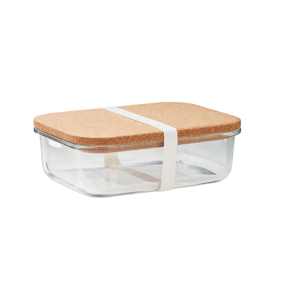Marca: MidOcean. Largo: 19 cm. Ancho: 14 cm. Alto: 6 cm. Capacidad: 830 ml. Apto para Lavavajillas, Apto para Microondas. Tapa de corcho. Sostenibilidad: Amfori, BSCI. Material: Cristal de Borosilicato. Embalaje: En Caja.