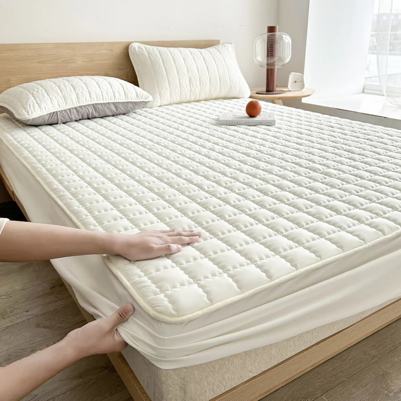 【DEEP POCKET DESIGN】Fitted-sheet style is suitable for all types of mattresses,The mattress pad is suitable as a mattress protection for children's beds, baby beds, bed wetters and as a waterproof.360°fully-surrounding elastic ensures your waterproof mattress cover stays in place,and extremely easy to put on and take off.