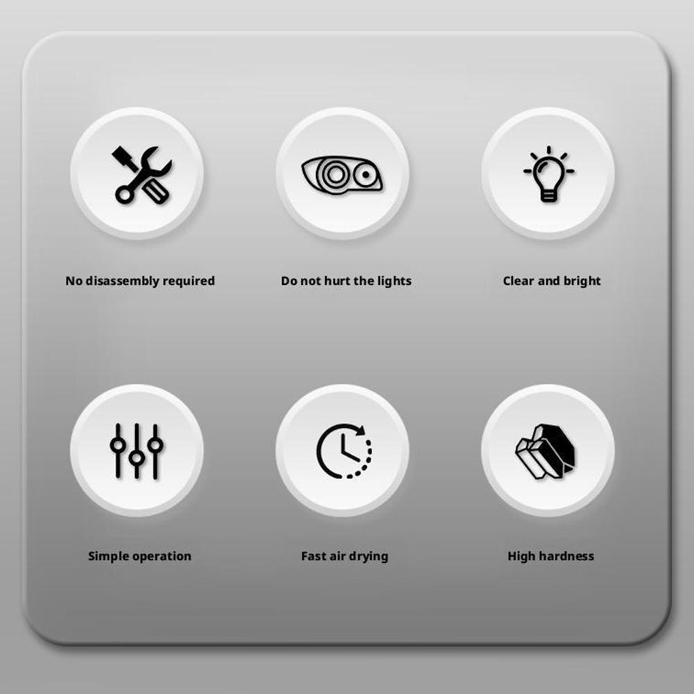 Efficient Headlight repair kit: Our car headlight repair kit is designed to restore the brightness and clarity of your car's headlights. This headlamp repair spray can remove yellowing, fogging and oxidation marks, ensuring safer driving at night.