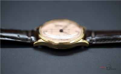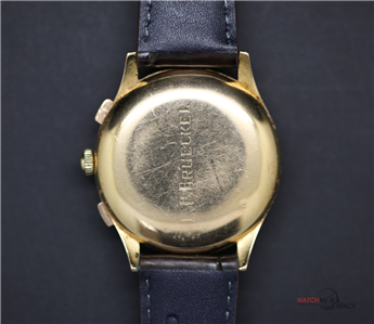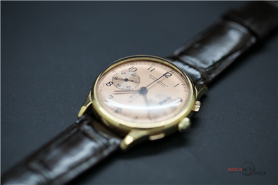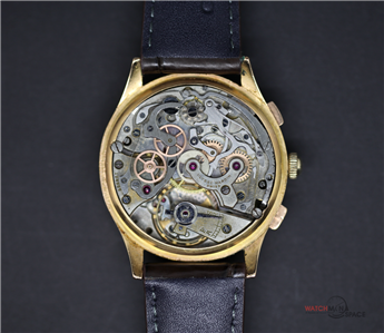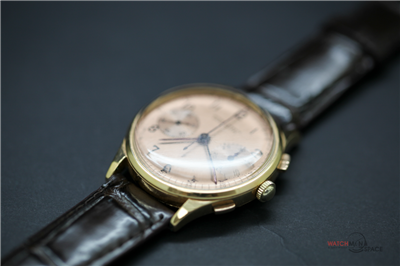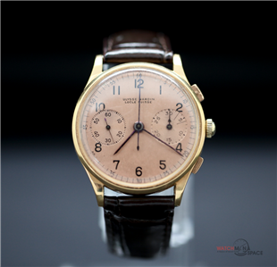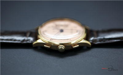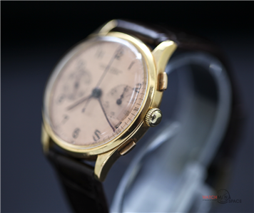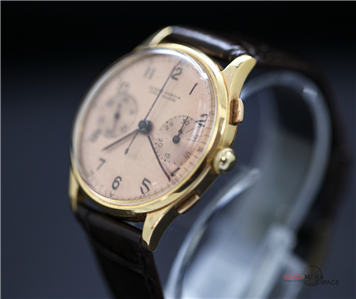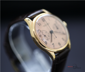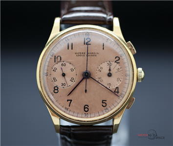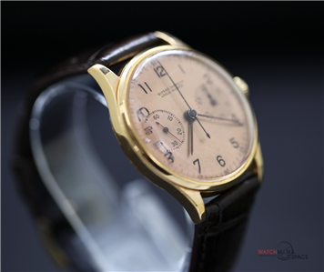 Vintage Men's Ulysse Nardine "Jumbo" 1945 Chronograph 18k Yellow Gold Watch with a Salmon Dial