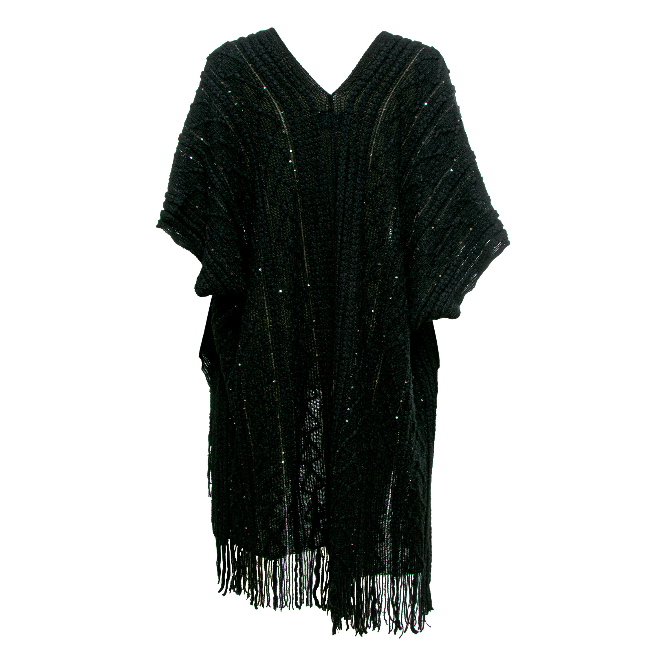 The Skyline Collection Black Knit Poncho Cardigan with Sequins, One Size