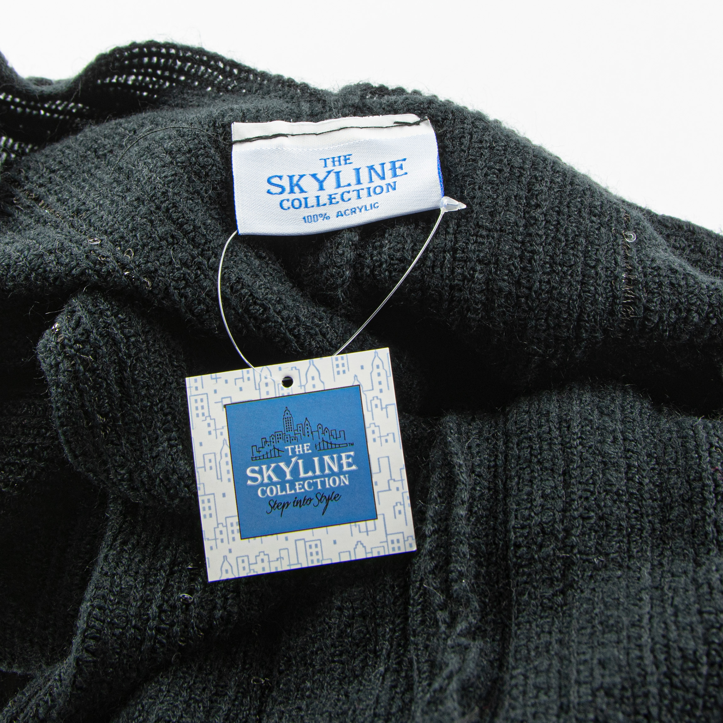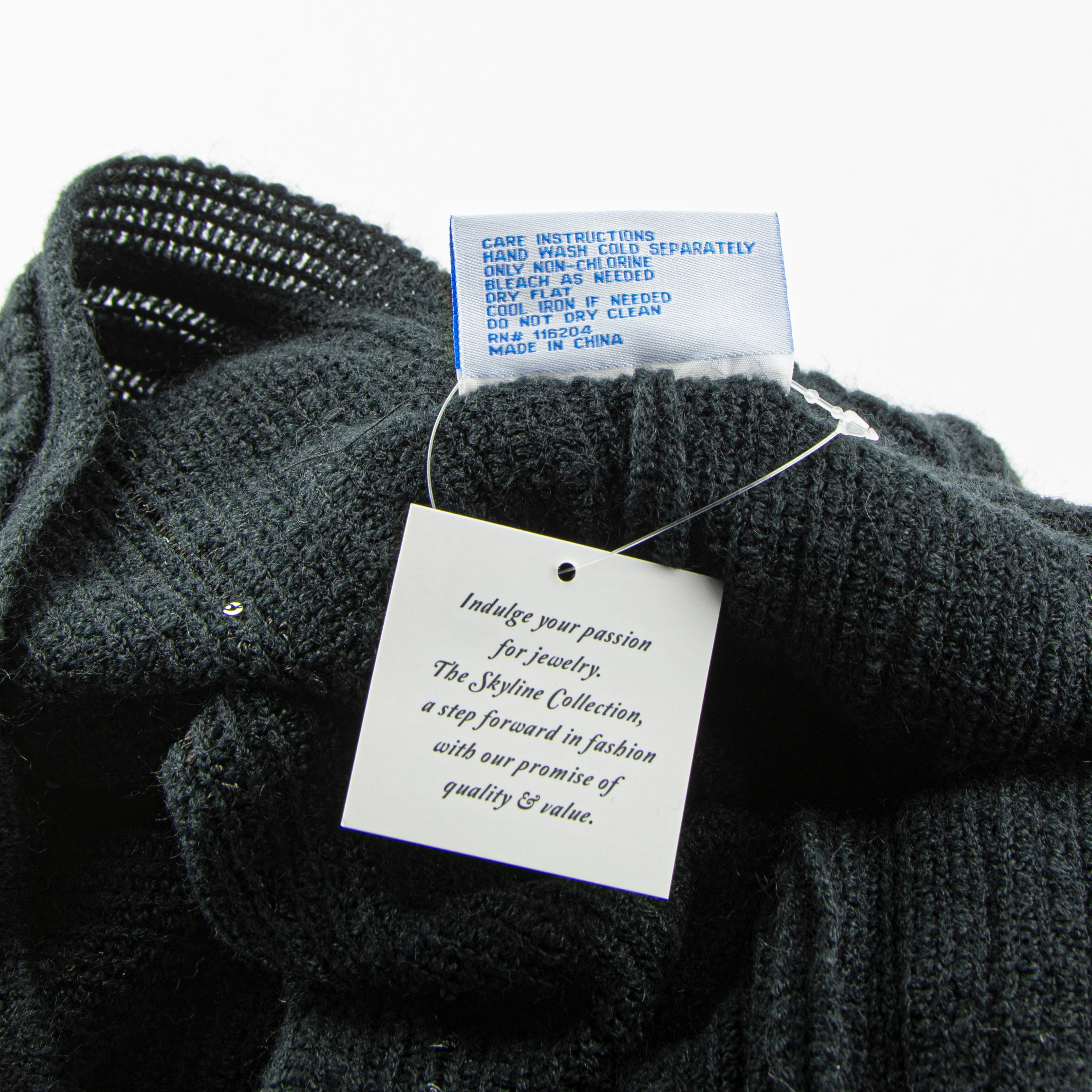 This open front sleeveless knit poncho vest from The Skyline Collection features fringed hemline and cable knit design. It comes in a classic black shade detailed with fun sequins. The super soft sweater is made from 100% Acrylic and hand washing is recommended. One size fits most. Measurements: 32" shoulder to shoulder, 31" long plus 4" fringe.