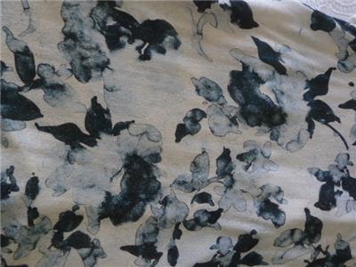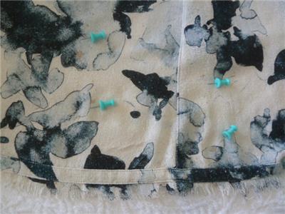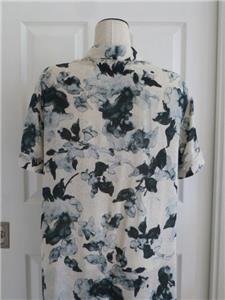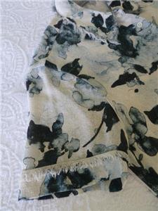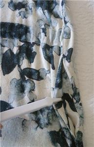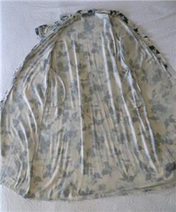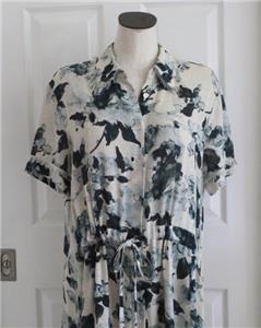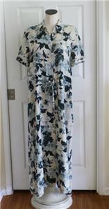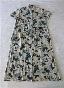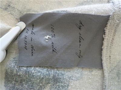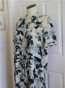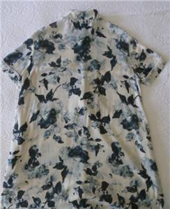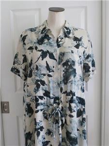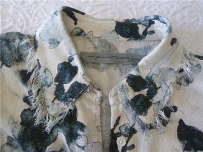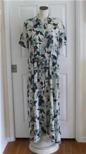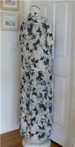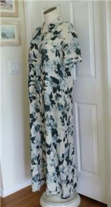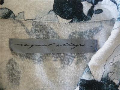 Fabulous dress from designer Raquel Allegra. Tag size is 2, oversized styling; please check the measurements below. 100% silk, woven natural linen-look with texture. Hand made. Artsy watercolor floral in shades of blue, which is picked up a bit in the off-white background. Maxi length, full front button. Front drawstring (photos taken cinched and uncinched). Some frayed edges along the hem, collar and sleeve trim. Side seam pockets. A similar style on her website suggests also wearing as a duster. There are a few small faint marks along the hem that I have not tried to address (see photo #24). A rare find and very versatile. Best appreciated by reviewing all photos.