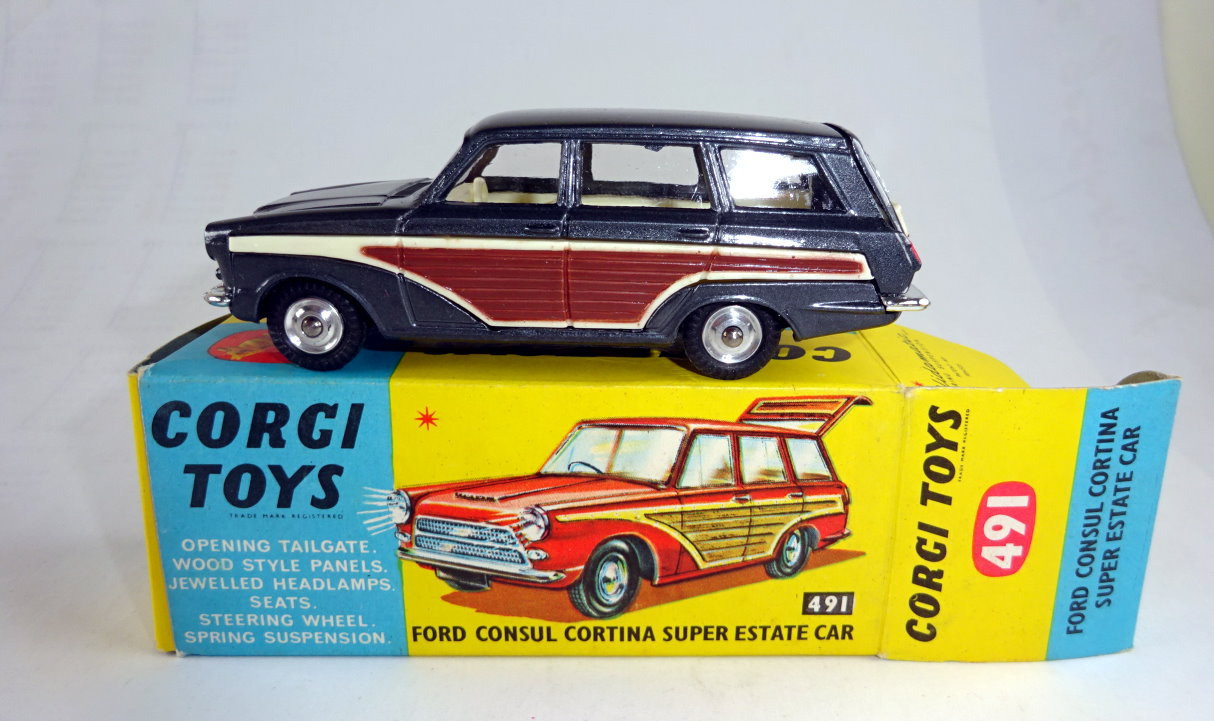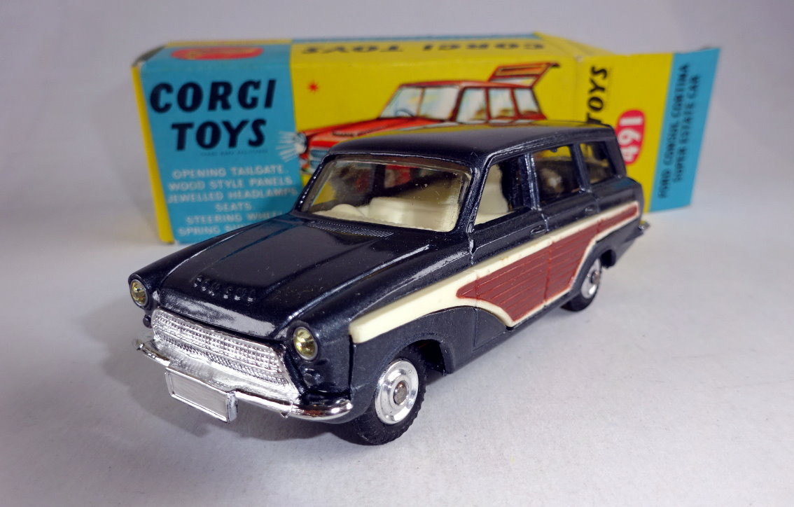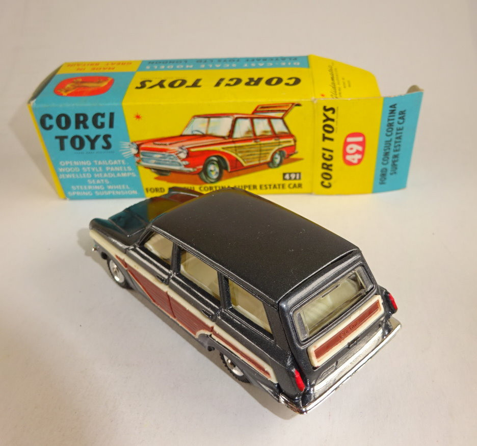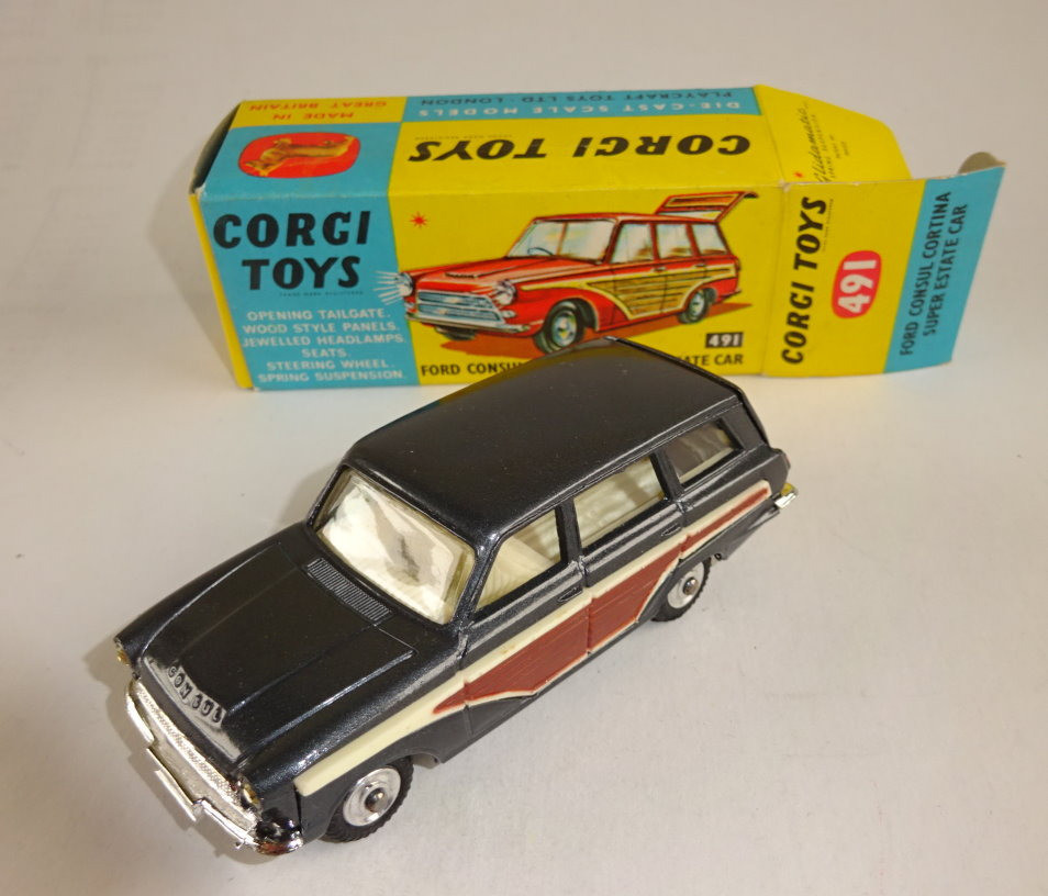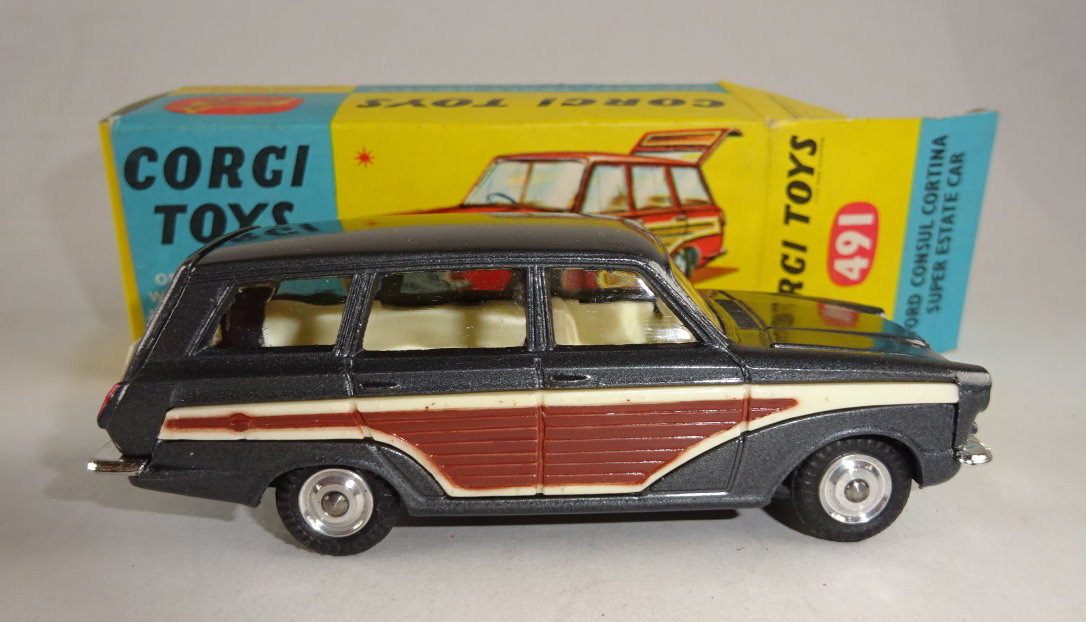 Consul Cortina Super Estate Car. Graphitgrau metallic, braune Seiten,