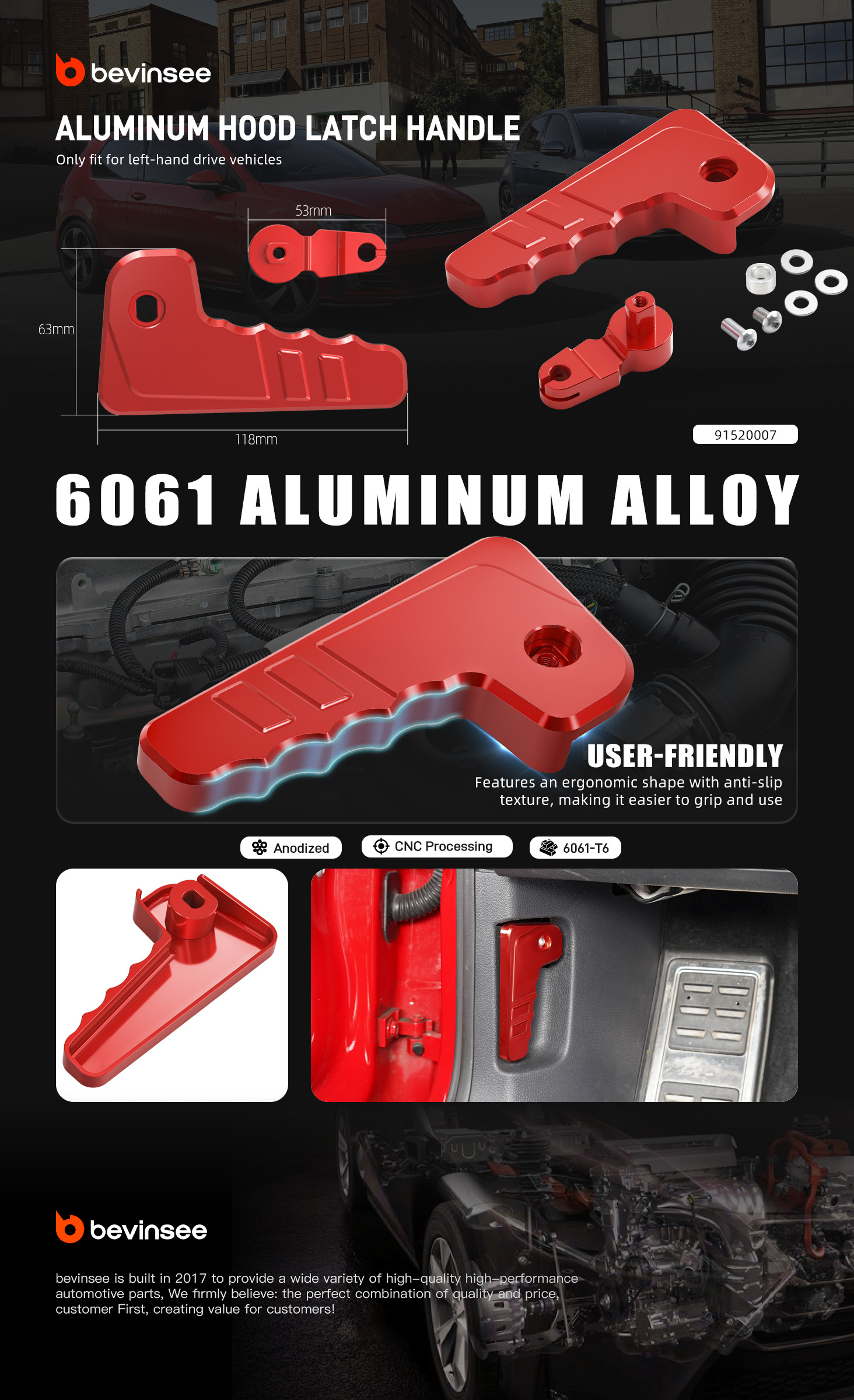【Stronger and More Durable】Hood release lever made of 6061 aluminum alloy, replacing the easily broken plastic lever arm and flimsy handle.