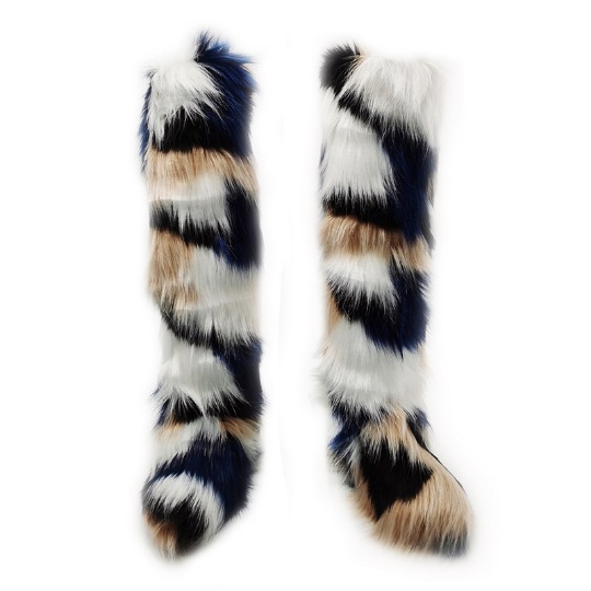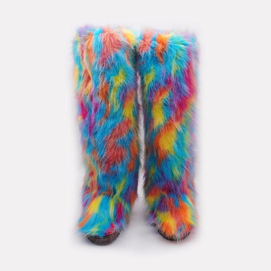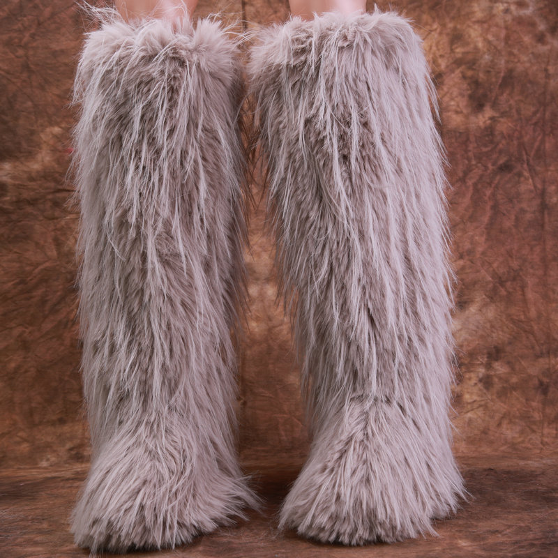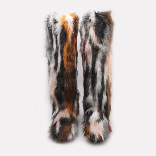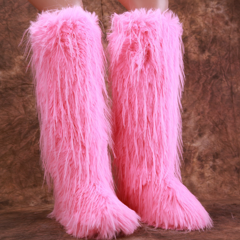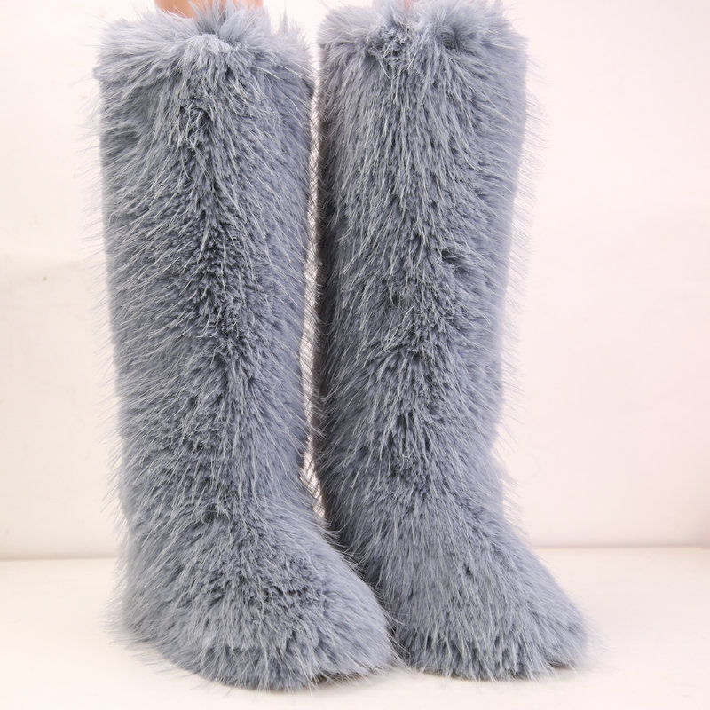 Womens Winter Round Toe Faux Fur Flat Heels Casual Knee High Snow Warm Boots