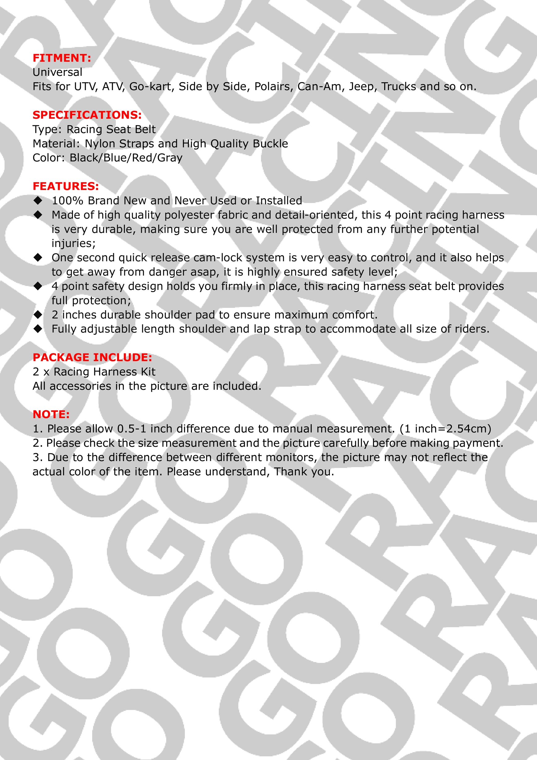 1.Please inspect your order upon receipt.