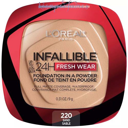 |  | | Brand | L'oreal | | Name | Infallible 24H Fresh Wear Foundation In A Powder | | Gender | Women | | Type | 220 Sand | | Size | 0.31oz / 9g | | Packaging | New |