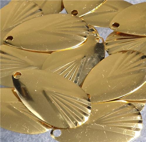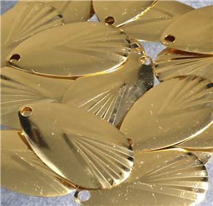 ~KINGFISHER DESIGNS FISHING TACKLE~ (25) Brass Spinner Blades Indiana Fluted The value of flash in the presentation of spinner lures is unmatched. The Fluted pattern on these blades add extra ripple and vibration, attracting more bites. Increase flash, ripples, water movement, vibration to your spinner lures with these premium Indiana Fluted spinner blades. Stamped on high quality brass and available in nickel, polished brass and other finishes. Build the perfect customized spinner with your creativity and add style to your lures.
