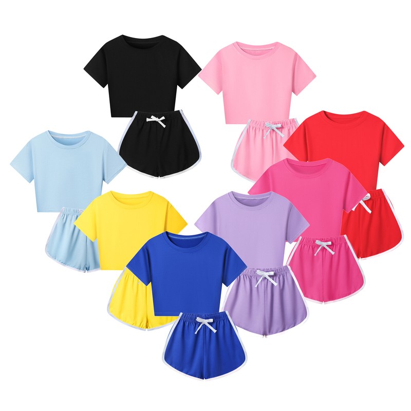 Round neck short sleeve crop top, pair with shorts, designed with side slit, elastic waistband for a better fit.