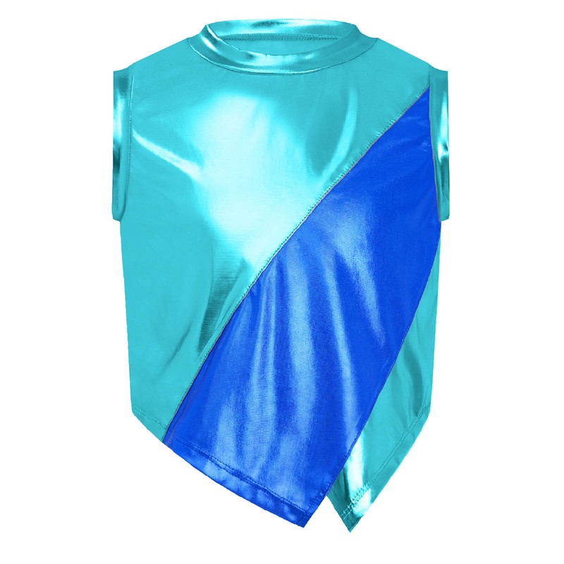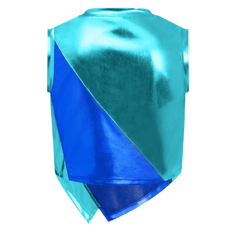 Kids Girls Sleeveless Irregular Hem Color Block Metallic Vest with Metallic Jacket and Pants for Sports.