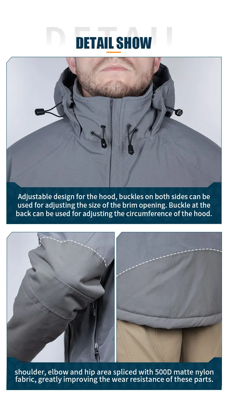 Features: Model Number: EMB9756 Condition: 100% New Season: Autumn / Winter Type: Emersongear Blue Label Musk-Ox Tactical Coat Materials: Main Material: 100% Polyester Lining: 100% Polyester Filling Cotton: 100% Polyester 250g Thinsulate 3M Cotton (Large Body) 150g Thinsulate 3M Cotton (Sleeve Cap) Size: S/M/L/XL/2XL/3XL/4XL Color: RG / DB / WG / MT Temperature Condition: -30℃ - 0℃ Gross Weight: 1.551kg Function: Fluorine-free Water-repellent / Highly Efficient Temperature Locking / Long-lasting Windproof / Adjustable Hood / Ergonomic / Scratch and Abrasion Resistant Fit For: Airsoft/Shooting/Outdoor/Mountaineering/Tactics/Hunting/Commuting/Hiking/Camping/StylingPackage Included: 1x Emersongear Blue Label Musk-Ox Tactical Coat Details: 1. Functional fabrics: ①Shell fabric: military specification mechanical elastic fabric, anti-scratch and wear-resistant, high tear-resistant, matte coloring, non-fluorine environment-friendly water repellent coating. ② body area filling material: Thinsulate® KL insulation material is a high fluffy, light and comfortable filling developed by 3M。 It features excellent warm keeping, moisture-proof and breathable. Its water absorption rate is no more than 1% of its own weight. In the humid environment, it can still maintain good warmth keeping, washable and it meets the safety level of baby products. ③Shoulder & sleeve splicing material: shoulder, elbow and hip area spliced with 500D matte nylon fabric, greatly improving the wear resistance of these parts. 2. Ergonomic design: Because most of the organs are on in the upper body, it is necessary to maintain the temperature for organs to work in extreme environments. Therefore, 250g high insulation material is used for the body area to ensure the warmth; while the arm needs flexibility during movement, so 150g insulation material is used on sleeves. 3. Shrinkage design of the hem can effectively prevent the wind from entering and improve the warmth keeping performance. 4. Adjustable design for the hood, buckles on both sides can be used for adjusting the size of the brim opening. Buckle at the back can be used for adjusting the circumference of the hood. 5. The cuffs are made of skin-friendly elastic knitted fabric, with thumb hole to protect the hands and prevent the cuffs from sliding upwards when you lift your hands. Also, a watch hole is designed to make it easy to check the time. 6. The sleeves are in ergonomic structure, free the movement of arms. 7. The inside of the hood and collar are made with skin-friendly fleece and lattice groove on the fleece can maintain air circulation. 8. Two inside pockets with mesh fabric designed with horizontal zip and vertical zip to meet habit of users. Attention: 1.All the size is provide for your reference, 1 ~ 3 cm error should be accept, 1 cm is equal to 0.39 inch. 2.As different computers display colors differently, the color of the actual item may vary slightly from the above images, thanks for your understanding.