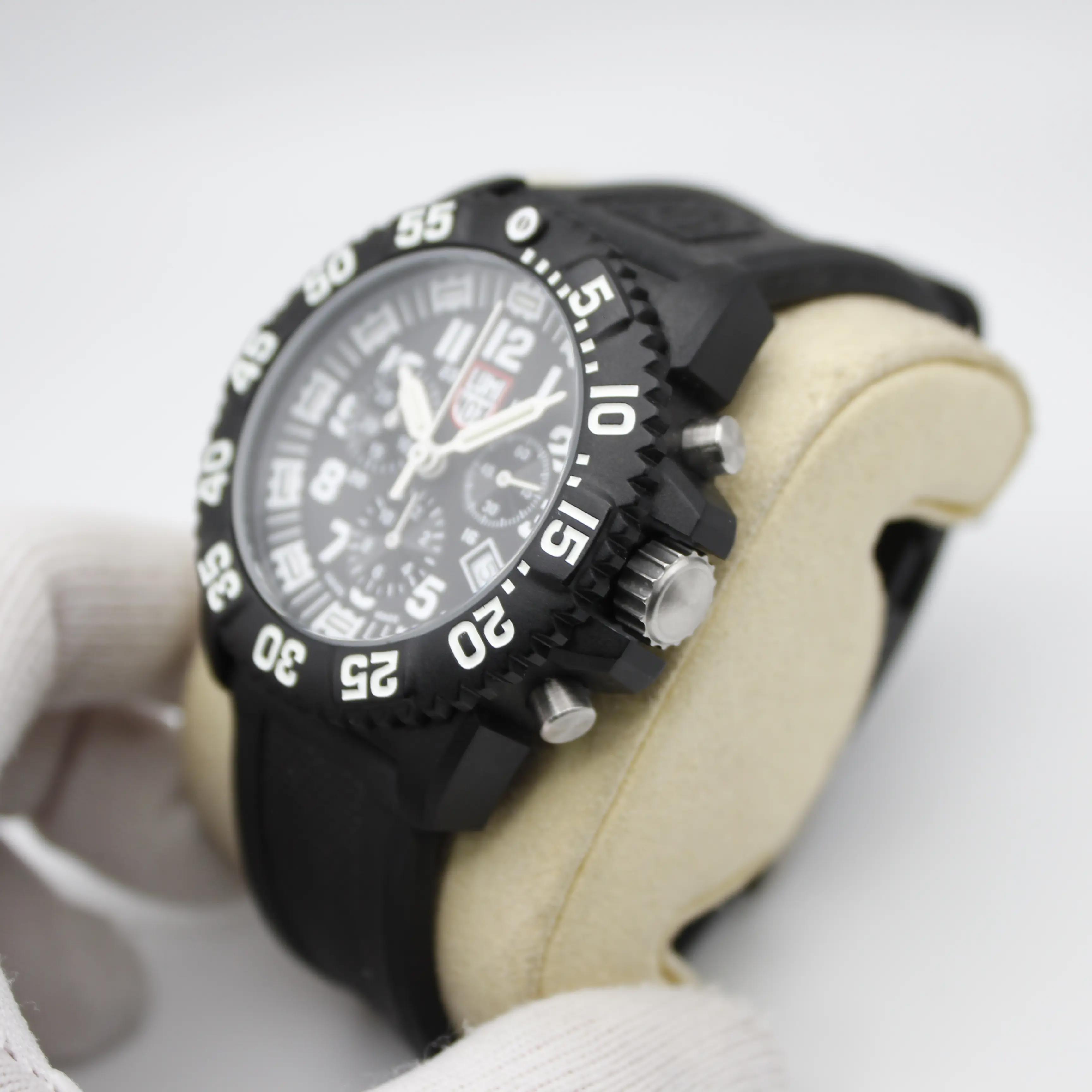 Operating a Chronograph requires using the pushers on the side of the case. The top pusher is used to start and stop the chronograph hand while the one at the bottom is used to reset it. Once the top pusher is pressed, the hand will run continuously, which you can track using the accompanying sub-dial. In order to reset the chronograph, it has to be stopped first. Otherwise the button will do nothing when pressed.
