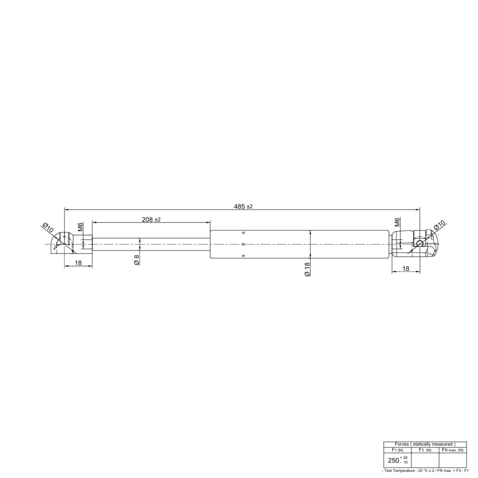 Extension force: 250 N