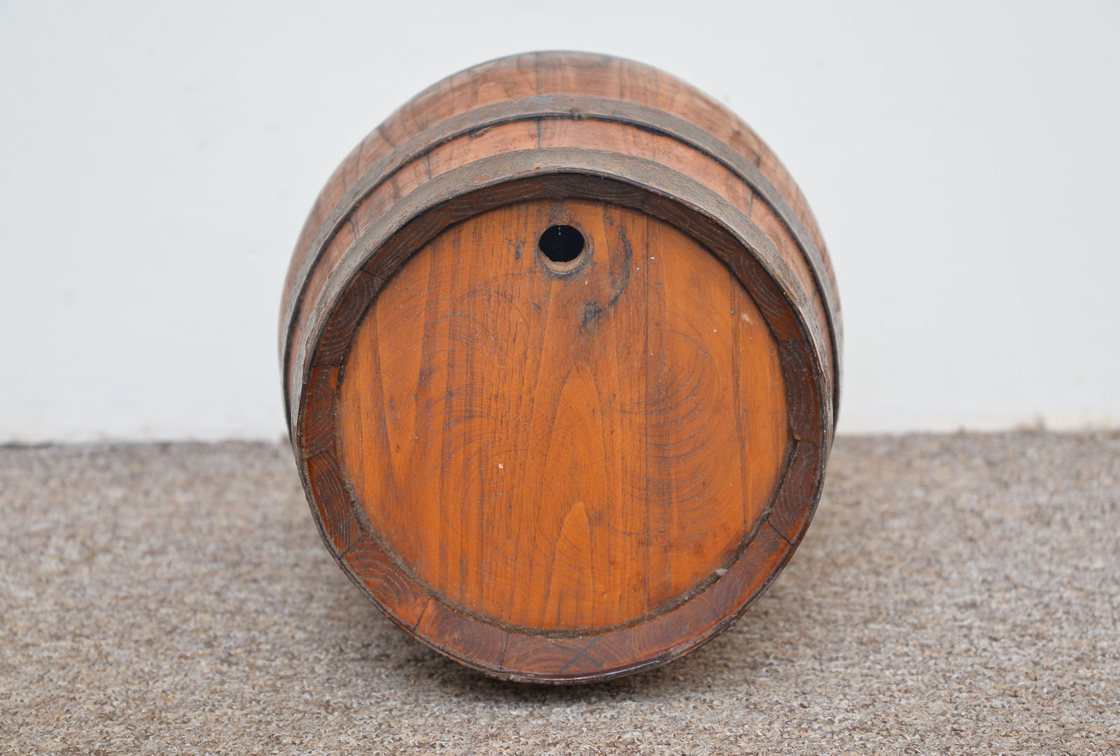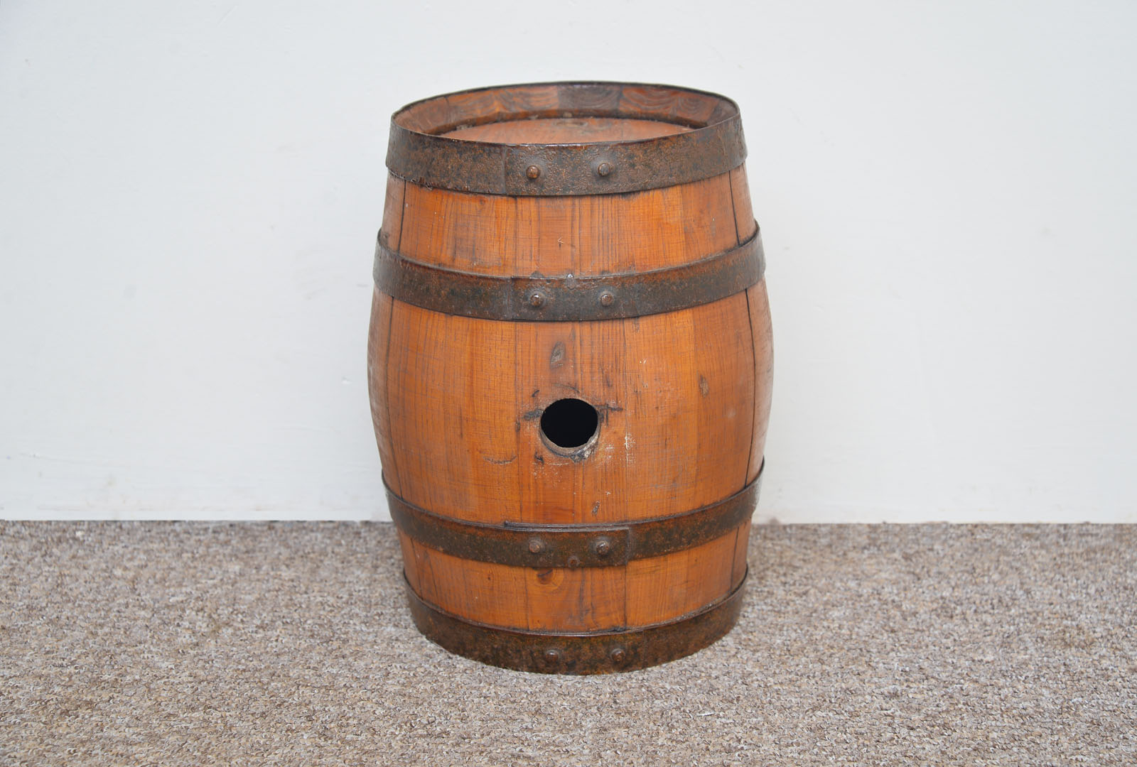 Welcome to my listing for this old small wooden whiskey/rum/sherry barrel.