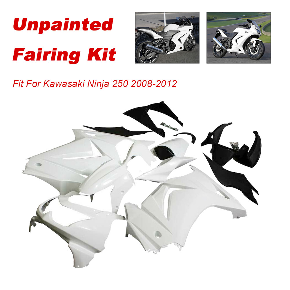 Fitment: Fit For Kawasaki Ninja 250R EX250 2008-2012 Specification: Package Includes: A Full Fairing Kit Notice: Because it is unpainted fairing , there may be some scratches or dust on the surface. You can paint it before installation.