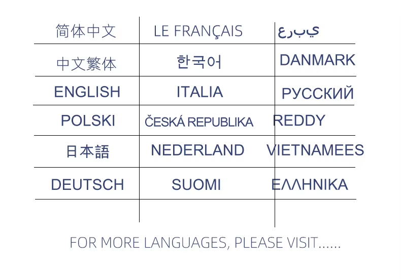Japanese/Italian/Spanish/Bengali/Dutch/Portuguese/German/Greek and other languages;We can design your brand logo to customize the machine