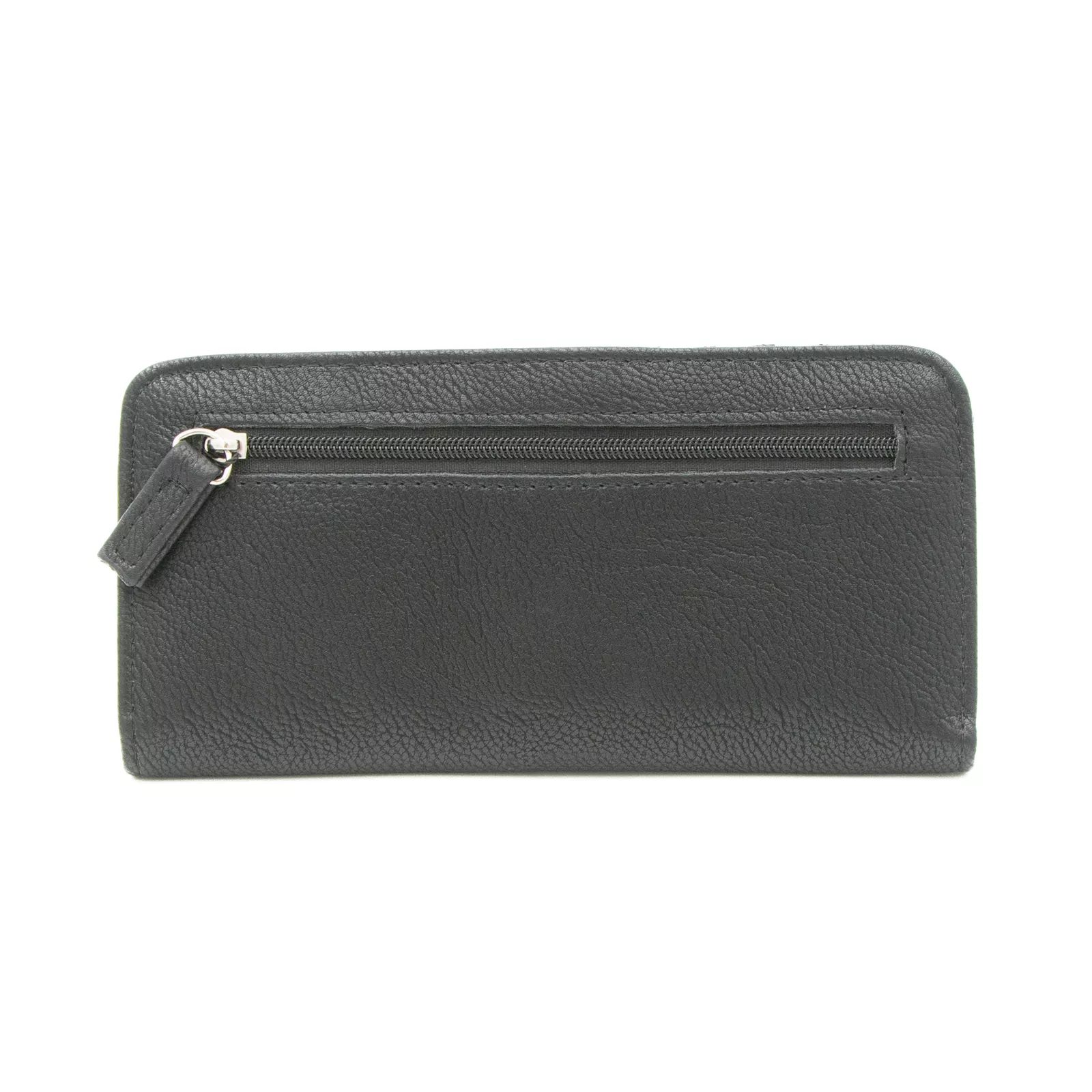 - The large wallet features 11 credit card slots, 1 ID Window, 1 currency/bill pocket, and one outside zippered pocket