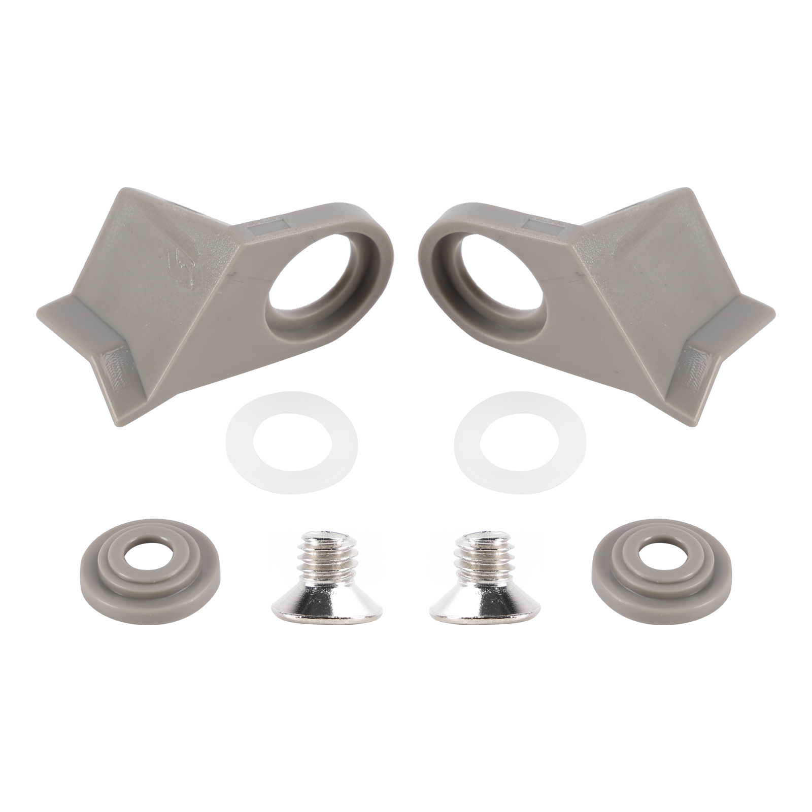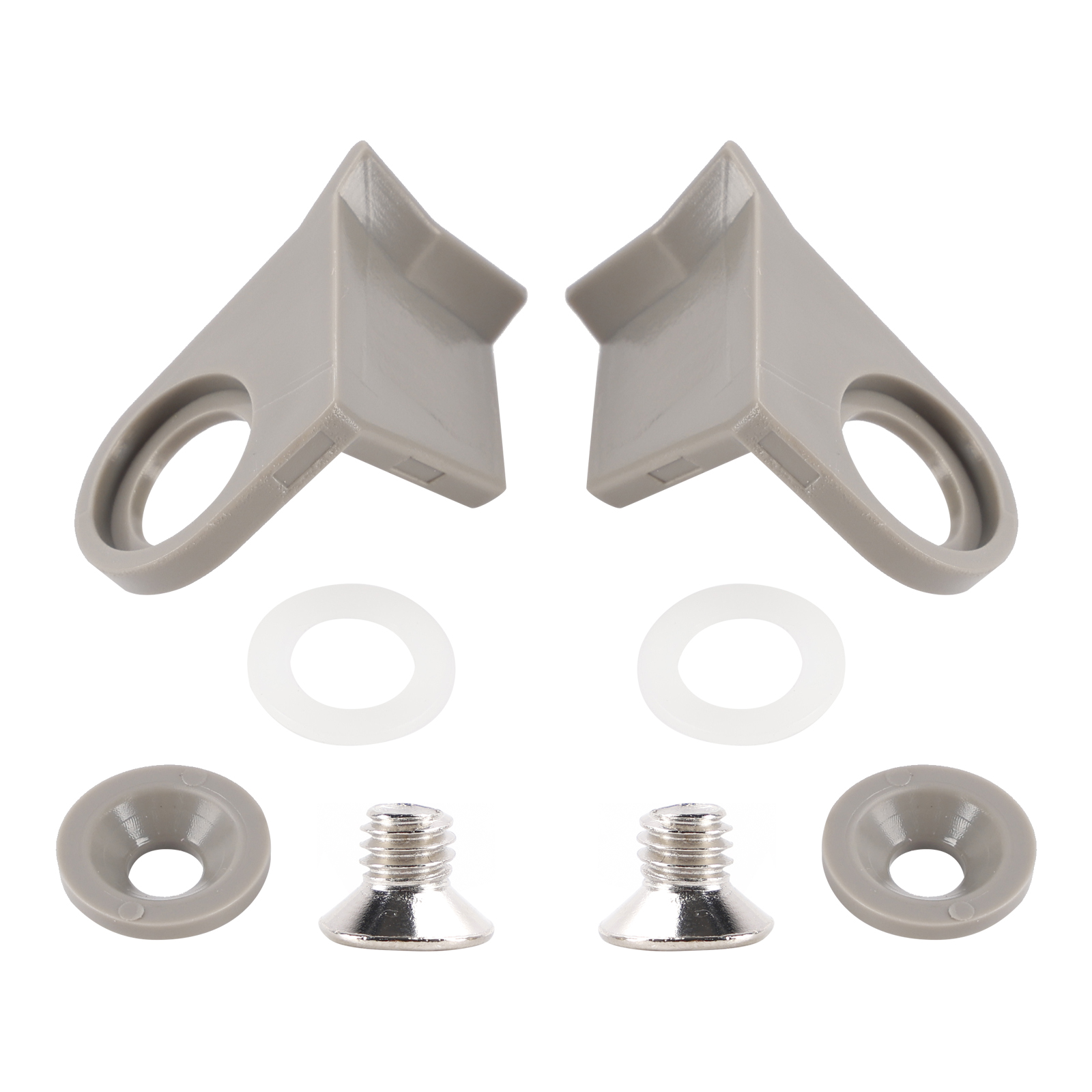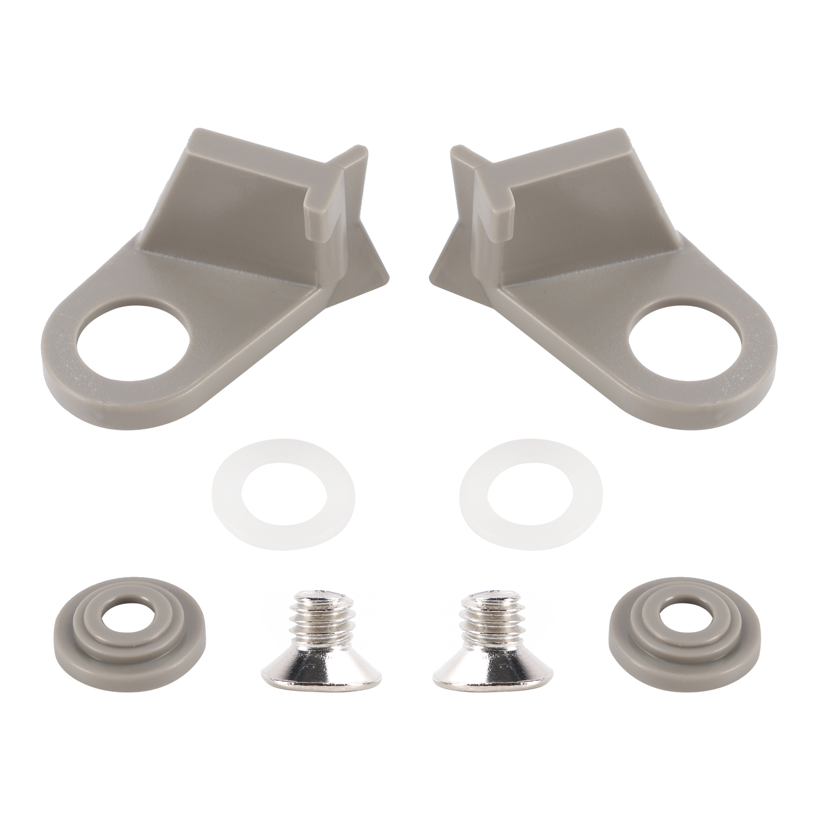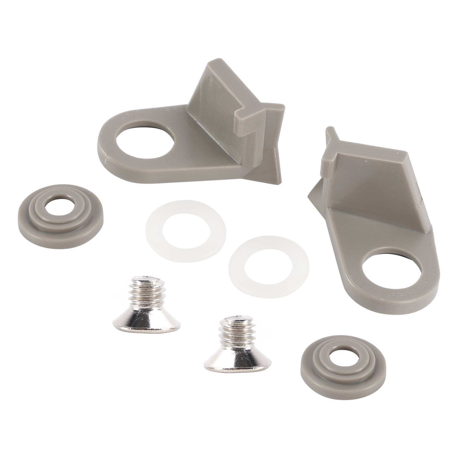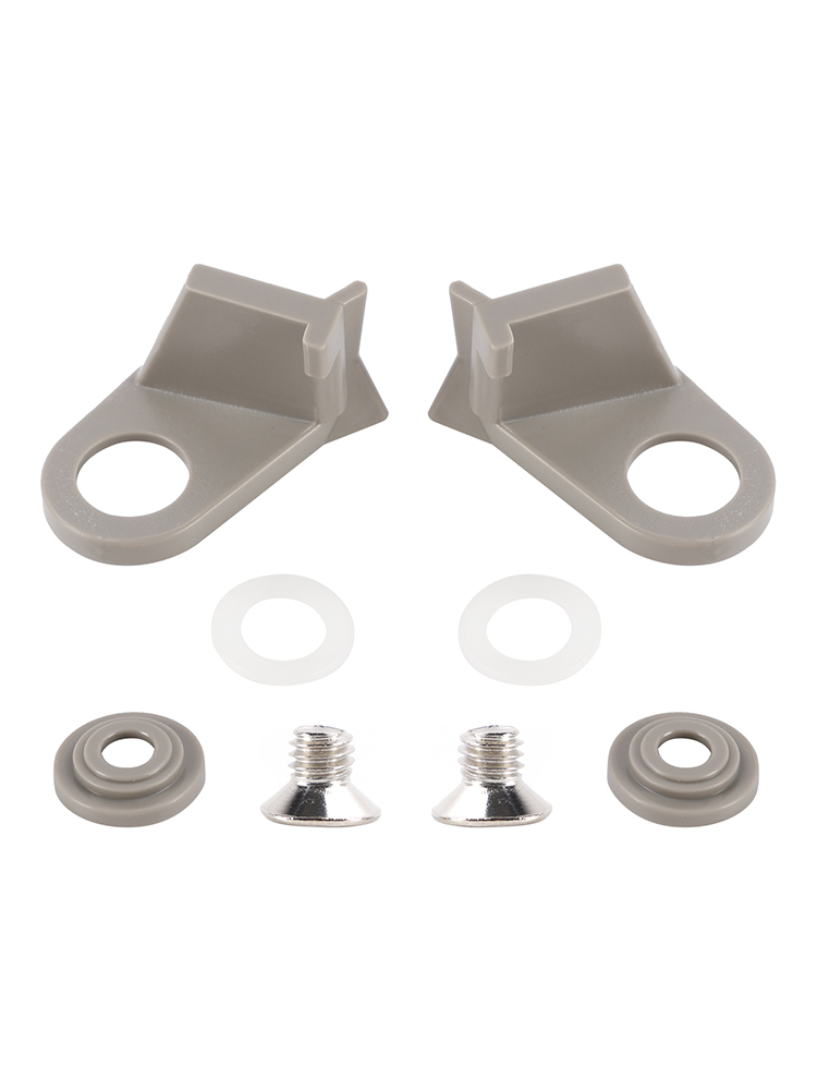 Package Includes; 2 plastic catches for left and right opening fridges (in a colour of your choice), 2 plastic stepped washers (colour matched), 2 nylon washer and 2 screws.