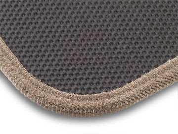 • Premium continuous filament nylon yarn in a 48-ounce per yard face weight (triple the thickness of most factory floor mats) • Luxurious construction of ½” pile thickness • Yarn is twisted and heat set in a two-ply construction for crush resistance • Many carpet colors match or compliment all vehicle interiors • Hand-beveling around edges and logos for a beautiful finished look • Continuous matching cloth edge can’t unravel • Scotchgard specially treated yarn to resist stains and soiling • Computer-driven cutting process insures a precise fit • Available with many officially licensed automotive logos • Personalized initials, military emblems and lifestyle logos offered • Multi-layer backing maintains mat shape and protects OEM carpet • Thick urethane core is completely waterproof and inhibits road noise • Non-skid rubber TractionBac™ also provides moisture protection • Factory-compatible mat fasteners (post, hook, snap) where applicable • Easy-to-install Lloyd anchors for vehicles not equipped with anchors • Absolutely stays put for optimum safety and durability
