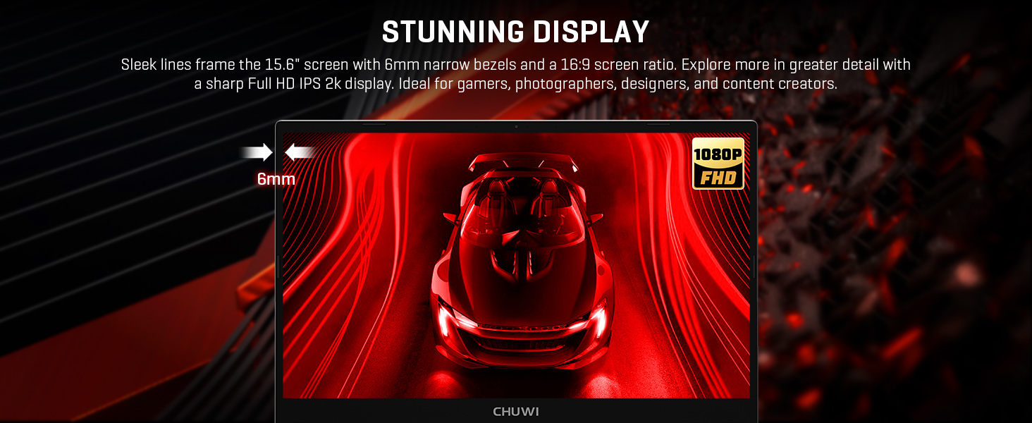 Visual and Display Quality: The 15.6-inch Full HD anti-glare display features narrow bezels and a 1920 x 1080 resolution, providing sharp and comfortable visuals ideal for work and entertainment.