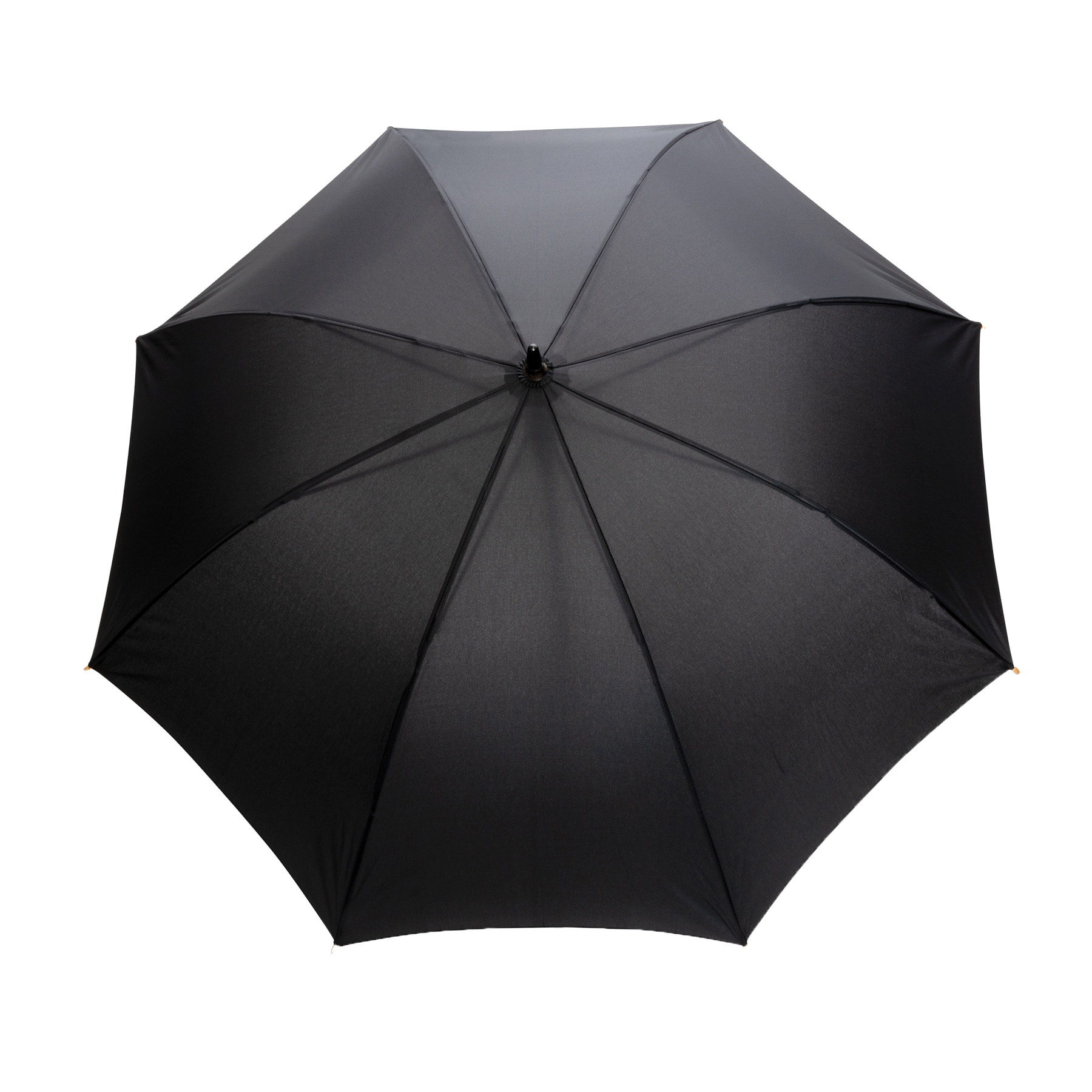 Fabric: 190T. Material: Metal, RPET. Width: 41.34in. Height: 31.3in. Design: Plain. Fabric Technology: Aware Tracer. Auto Opening, Fibreglass Ribs. Canopy Size: 123cm. Sustainability: Amfori, BSCI. Bamboo Handle. Conforms to Safety Standard: Cadmium Tested, Phthalates Tested, REACH. Chlorinated Paraffin Free. Framed. Packaging: Polybag.