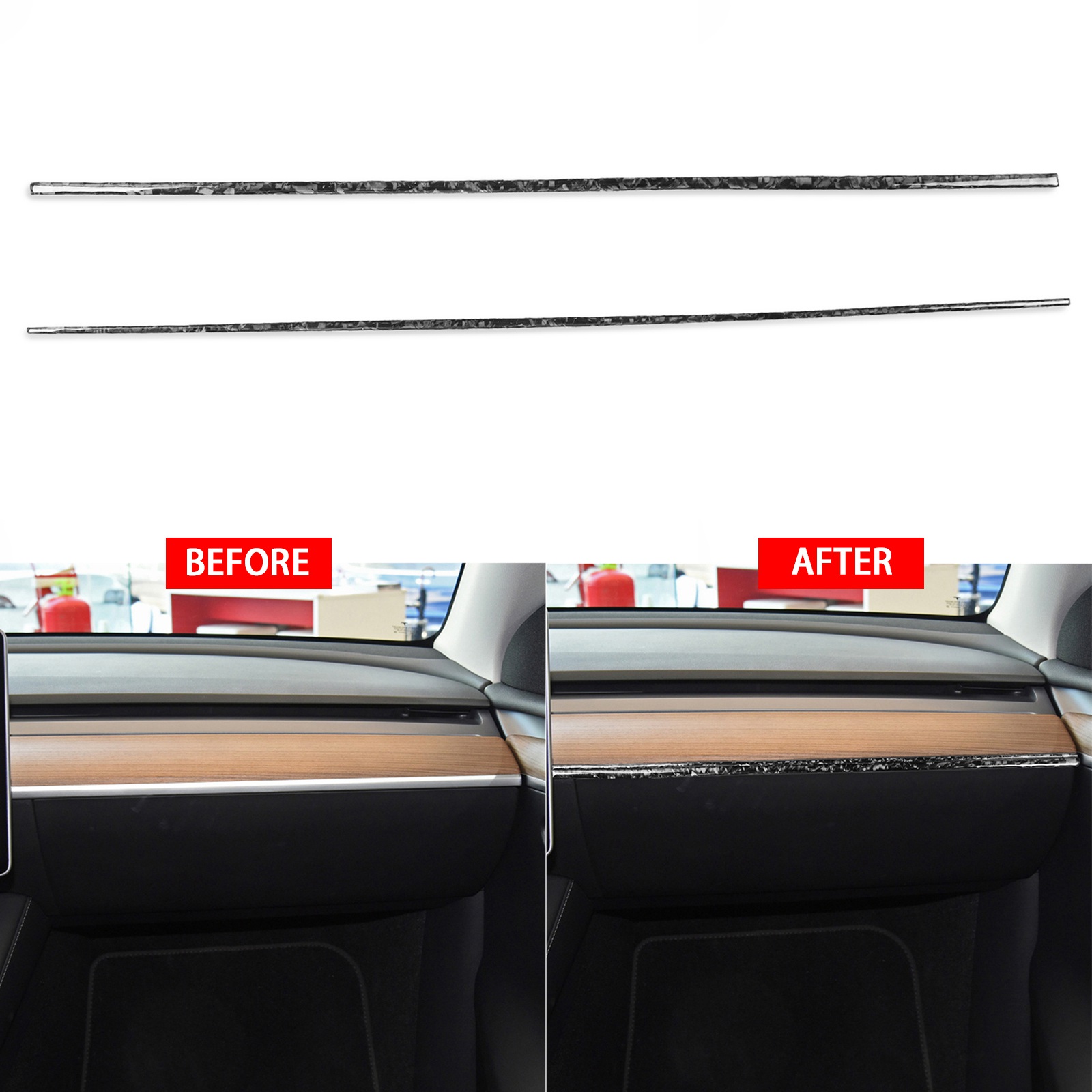 2Pcs Real Carbon Fiber Co-pilot Dashboard Lower Trim Strip