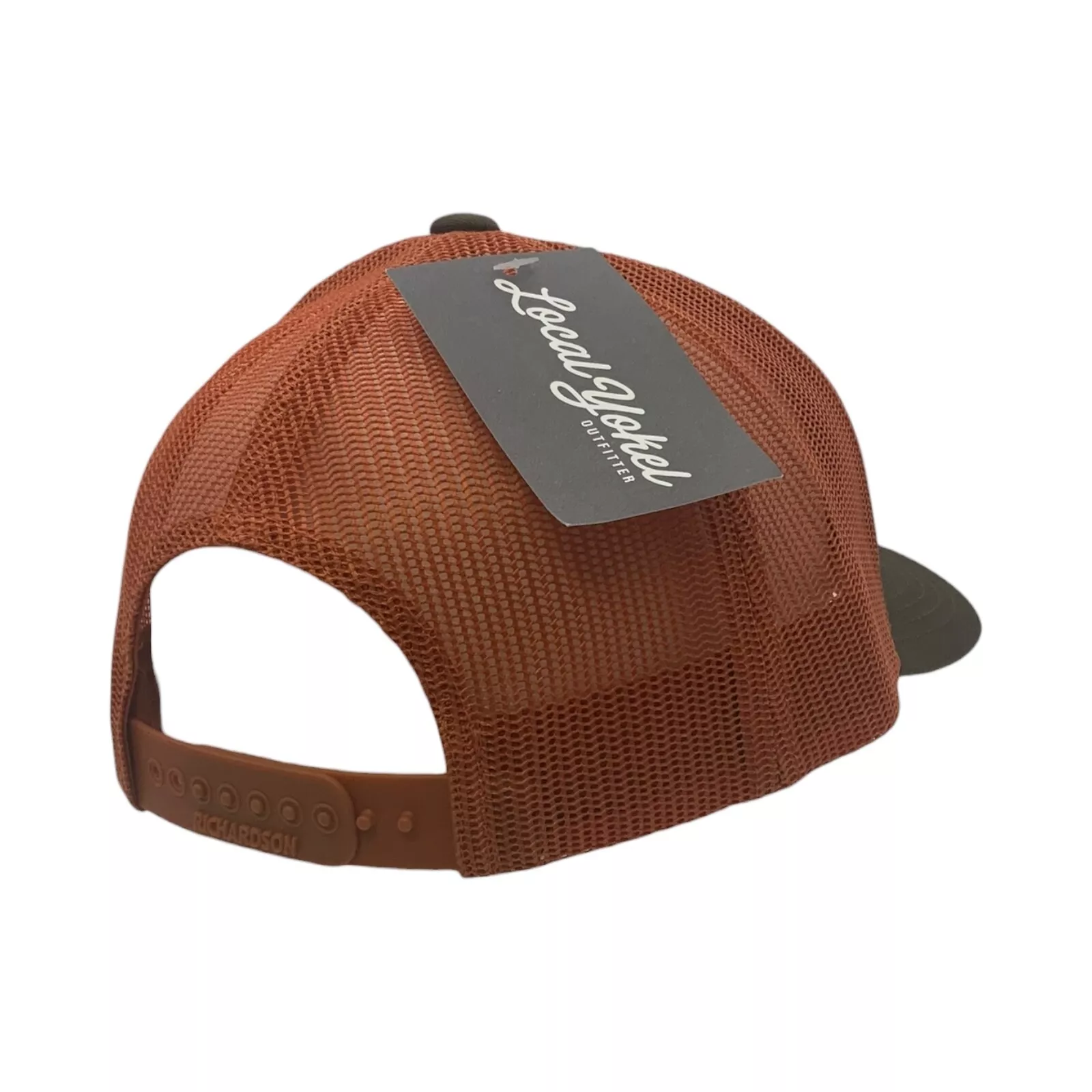 - Earth Tone Colorway – Brown front panel and curved brim paired with loden orange mesh backing for a rugged, casual look that pairs easily with everyday wear.