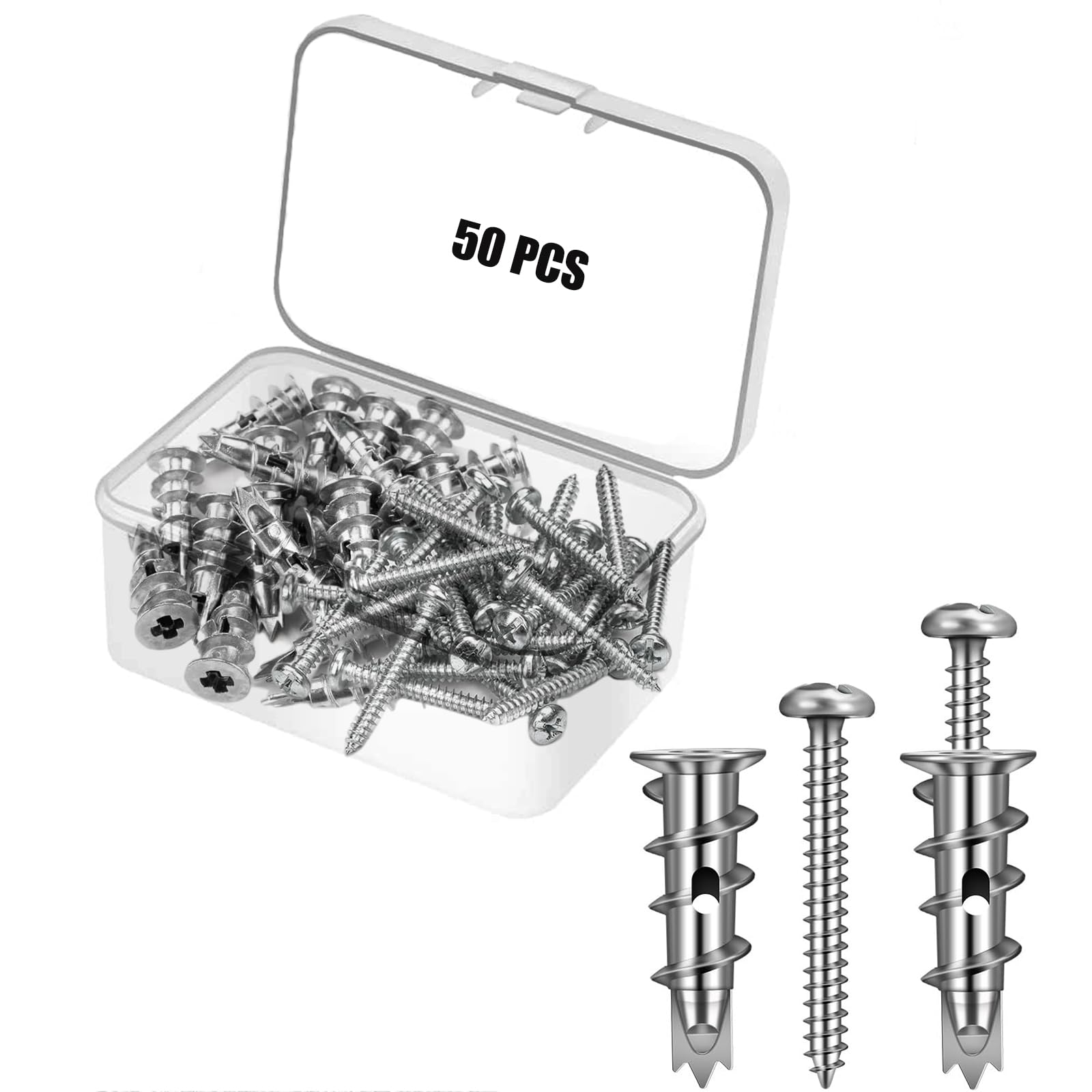 Transform your home improvement projects with this comprehensive 30-piece self-drilling drywall anchor set. These sturdy anchors eliminate the need for pre-drilling, saving you valuable time and effort during installation. The set includes matching screws and comes in a convenient storage case to keep everything organized. The anchors feature a sharp drill point and deep threads that cut cleanly into drywall, providing superior holding power for hanging pictures, shelves, and other wall-mounted items. Each anchor is precision-engineered from durable metal to ensure reliable performance and long-lasting support. The included screws are perfectly sized to work with the anchors, creating a secure mounting solution. Whether you're a DIY enthusiast or professional contractor, this set provides everything needed for multiple mounting projects. The clear storage case makes it easy to transport and keeps the anchors and screws protected when not in use.