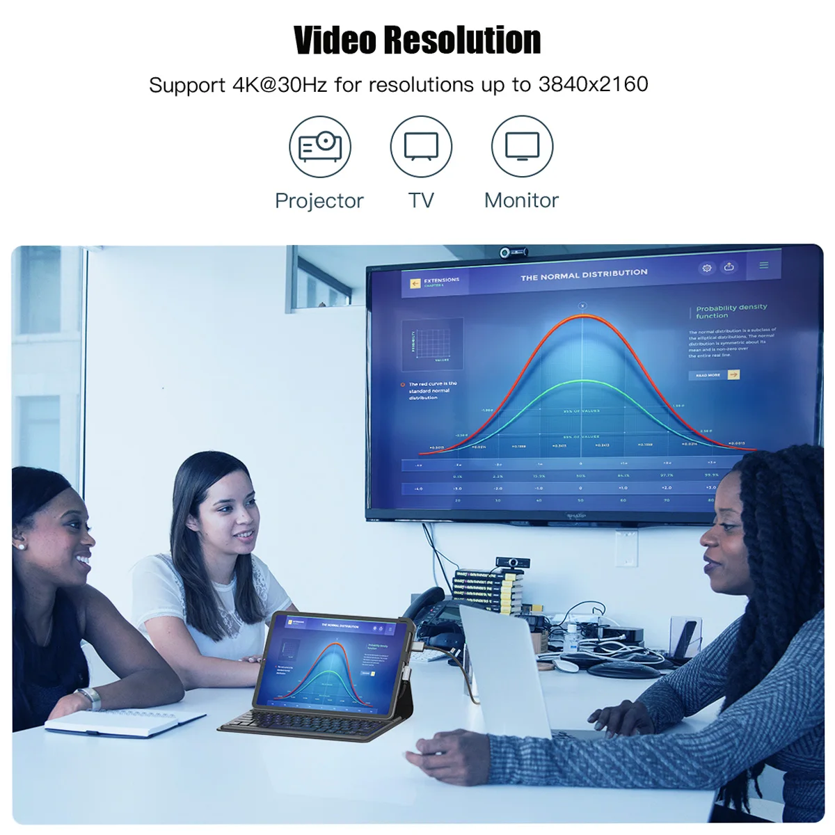 Useing your iPad with the hdml port can connect to projector and do a presentation or speech in classroom. The usb-c port supports 100W power delivery, can transfer video while charging.(Tips: Video output for 2018 iPad Pro is 2K@60HZ resolution)