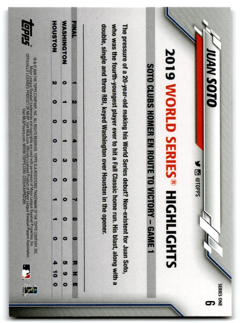 | 2020 Topps Series 1 6 Juan Soto | ||||||||||||||||