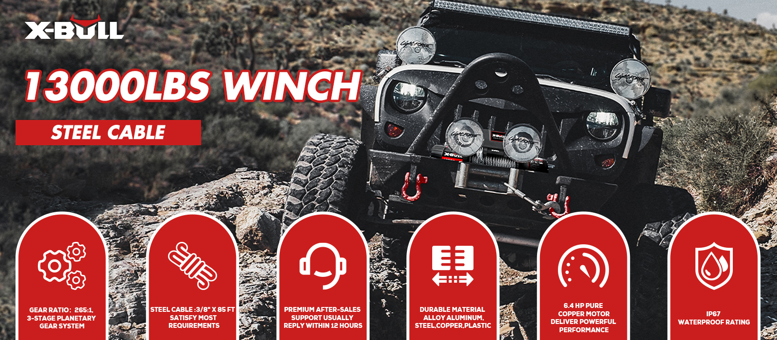 Every winch and accessory ships straight from our state-of-the-art factory, giving you factory-direct prices and the industry’s best build quality. To back that up, every product is protected by a full 1-year warranty and serviced by our in-house support team.We partner with the fastest, most reliable logistics providers so your gear arrives on time and intact. And because “Customer First” is more than a slogan here, we actively collect and act on your feedback—rolling out upgraded designs, stronger materials, and smarter features year after year. When you choose X-BULL, you’re not just buying equipment; you’re joining a community that listens, improves, and powers your next off-road adventure with affordable toughness.We are selling top quality products at rock bottom prices.
