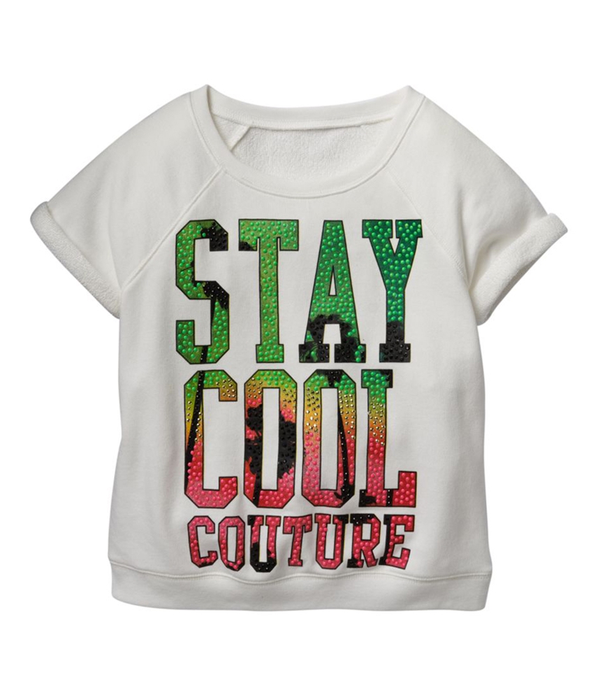 Prepare to be the talk of the town with the Juicy Couture Girls Stay Cool Sweatshirt. Crafted for the young fashionista, this sweatshirt boasts a blend of 60% cotton and 40% polyester, offering the perfect balance of comfort and durability. The moment you slip into this French terry pullover, you'll know it's like no other. The crew neck embraces your neckline with plush comfort, making you feel as if you're wrapped in a warm hug. A spectacular array of colorful studs form the dynamic graphic front, ensuring you’re not just in the room, you’re the room! Handmade with meticulous care in Indonesia, this piece shouts "unique" in every stitch._x0001_ Let's spice it up a notch. The rolled cuffs on the short sleeves show that you're casual but with a flair for sophistication. The banded hem gives this preppy ensemble its final touch of chic. It’s not just a garment; it's your new fashion statement. Be it a playdate, a casual hangout, or a birthday party, this sweatshirt has the versatility to make you stand out wherever you go. Be the dazzling diva you are meant to be and let this sweatshirt be the crown jewel of your wardrobe. Are you ready to show off your unparalleled style? It’s not just about looking good; it’s about feeling invincible!