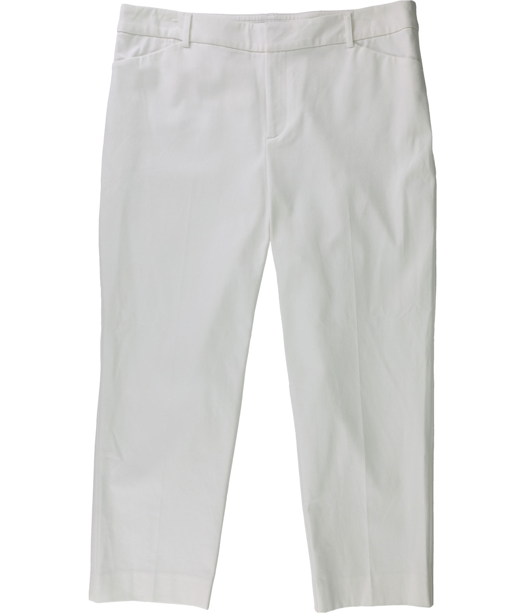 Additional Details: Solid, casual, straight leg pants Cropped length Zip-fly and hook-clasp closure Welt and faux pockets