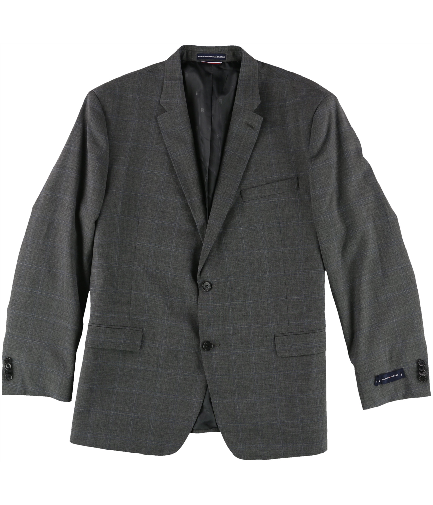 Tommy Hilfiger Mens Windowpane Two Button Blazer Jacket, grey, 48 Regular
