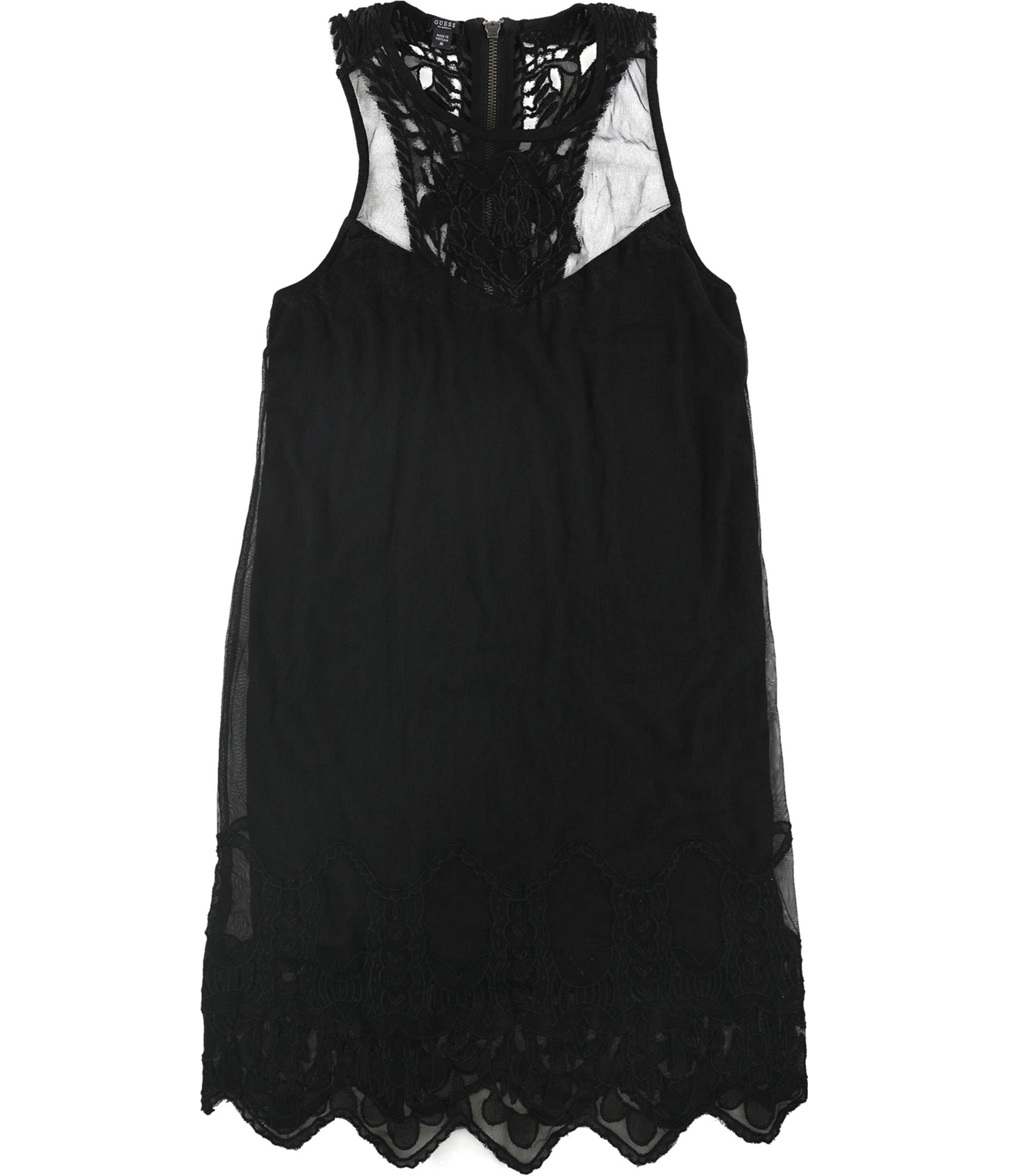 Style Number: W51K38 Gender: Womens Country of Manufacture: Vietnam Collar Style: Round Collar Fastening: Zipper Material: 100% Polyester Pattern: Lace Season: All Seasons Density: Light Weight Sleeve Length: Sleeveless Occasion: Casual Theme: Modern