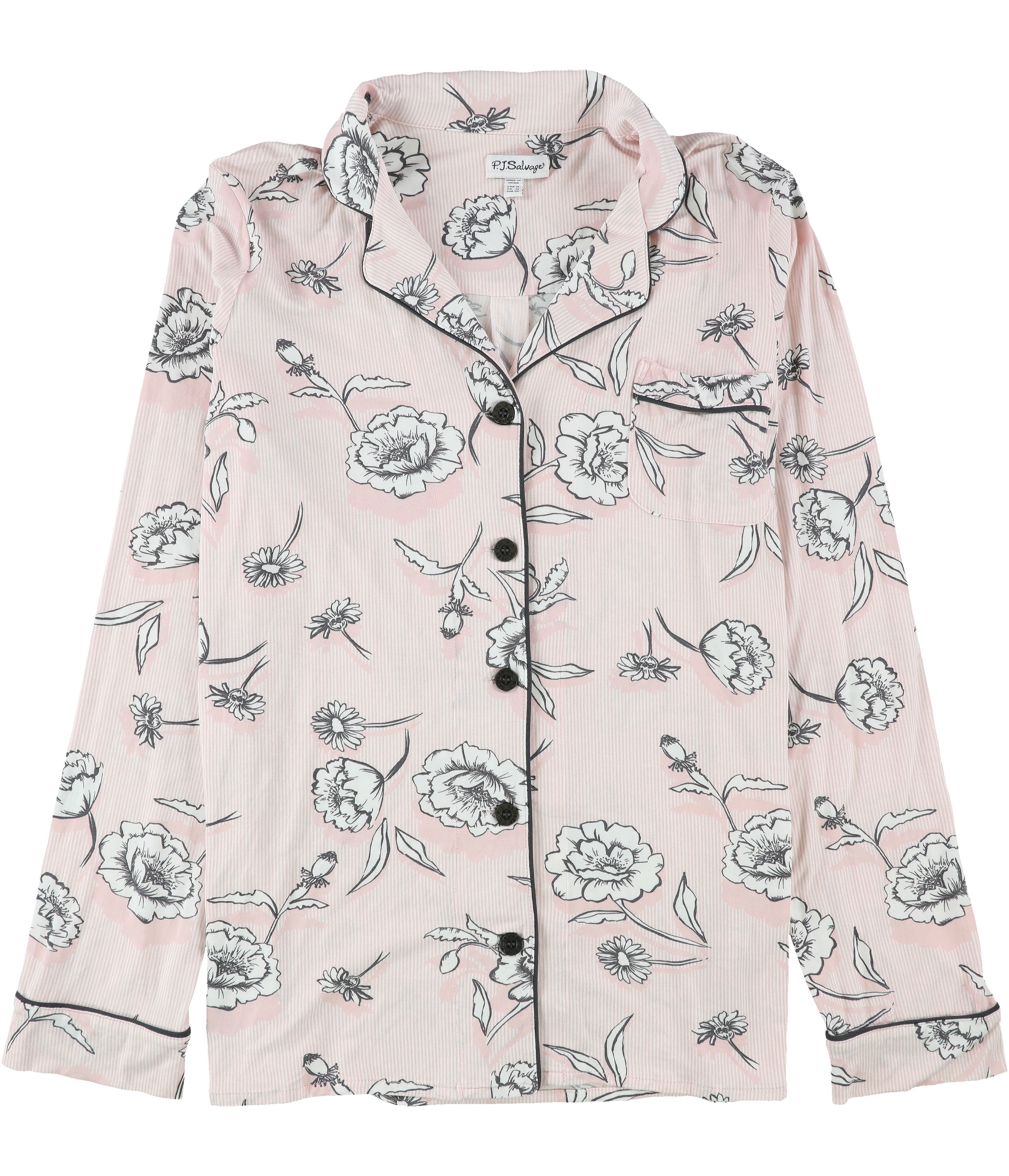 P.J. Salvage Womens Shadow Stripe Floral Button Down Pajama Tops, blush, M